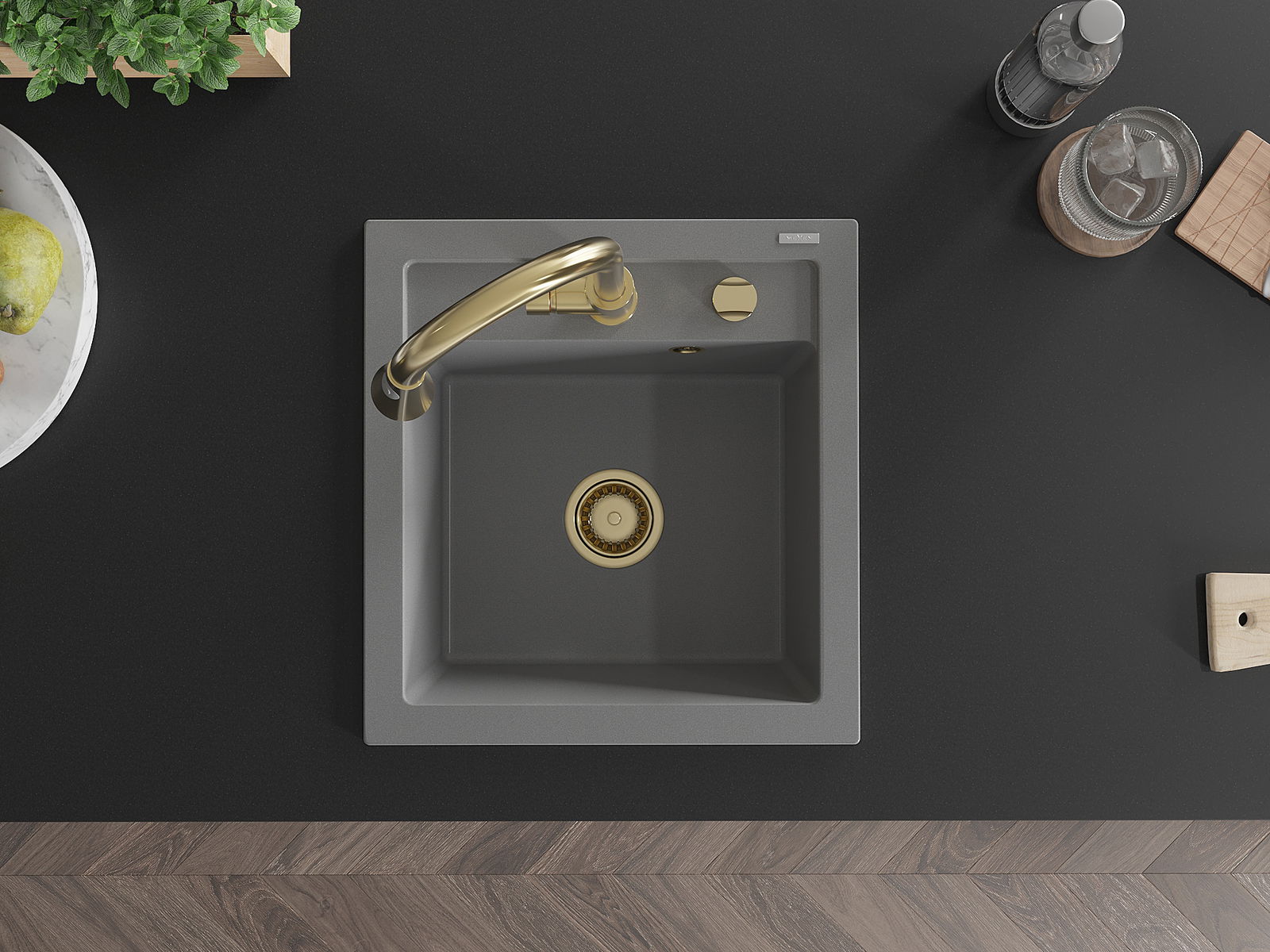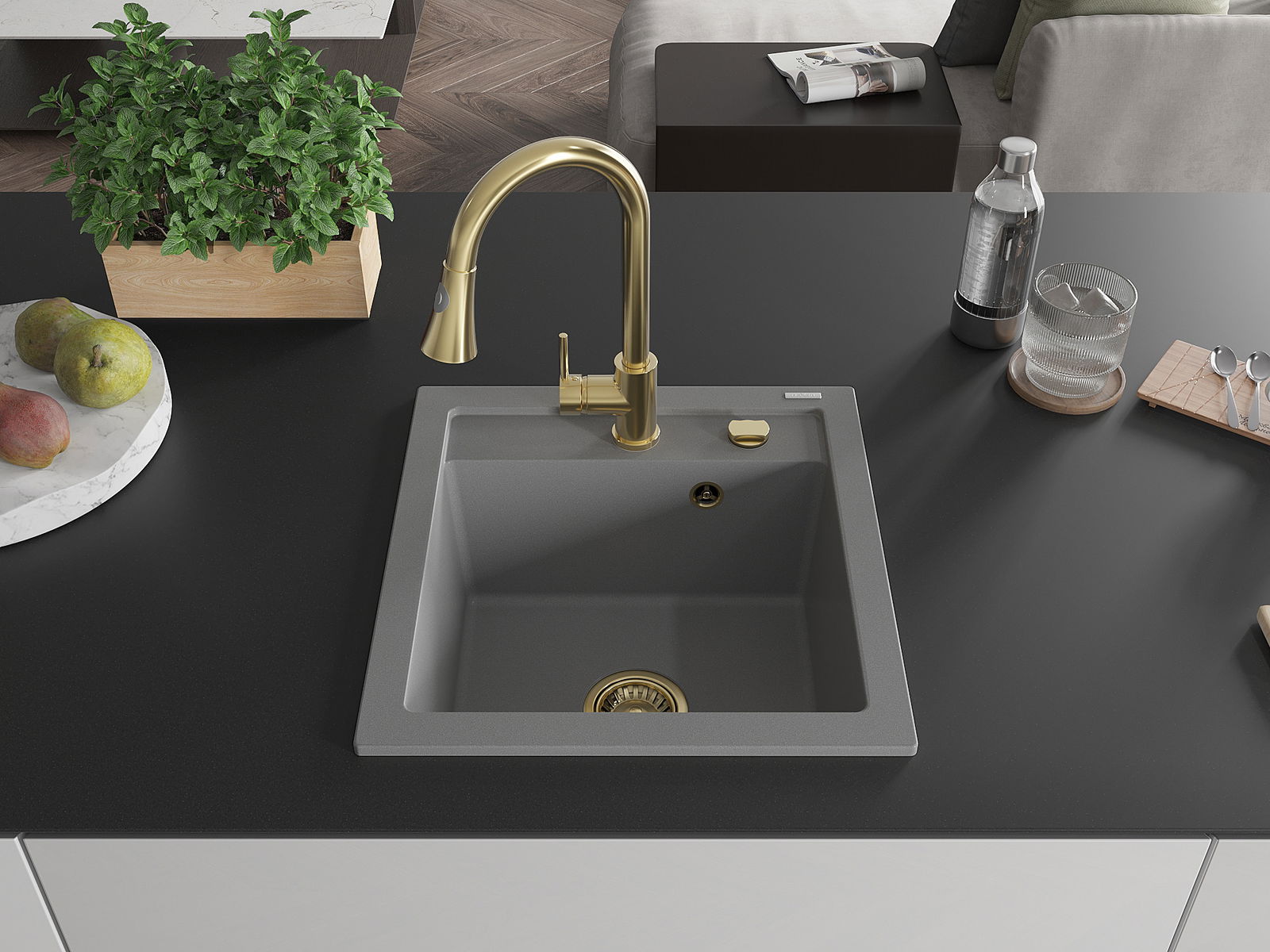 Mexen Vito 1-skylių granito virtuvės plautuvė su Elia virtuviniu maišytuvu, pilka - 6503-71-670101-50