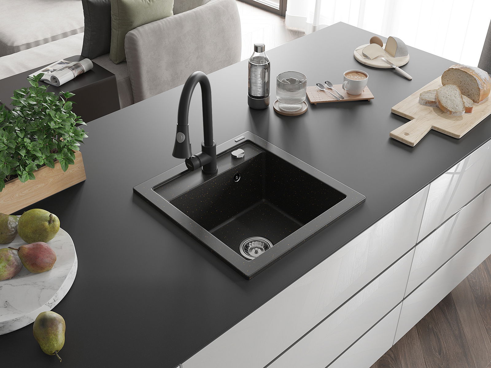 Kriauklės paviršius yra atsparus dėmėms ir spalvos pokyčiams, todėl jį lengva prižiūrėti ir jis išlaiko savo spalvą ilgą laiką. Estetiškai ir praktiškai papildo kiekvieną virtuvę.