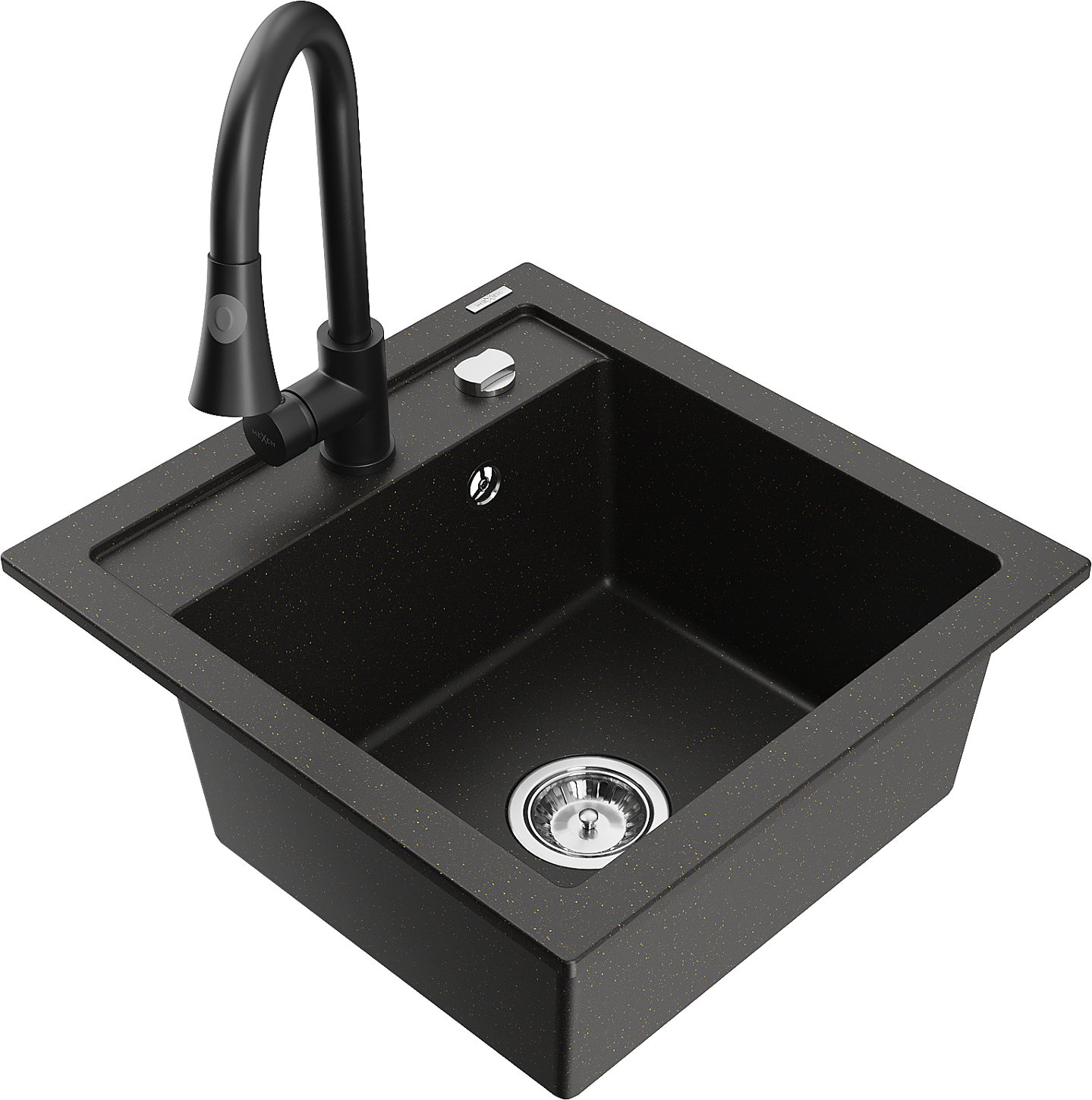 Mexen Vito granito plautuvė su viena kamera ir virtuviniu maišytuvu Elia, juoda/auksinė metalo spalva - 6503-75-670101-70
