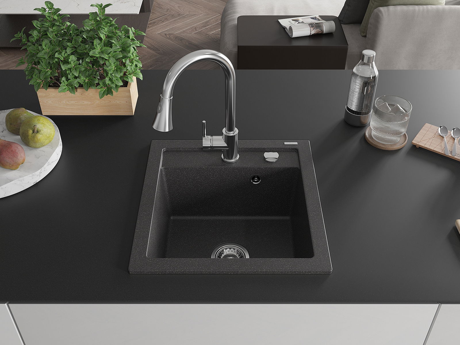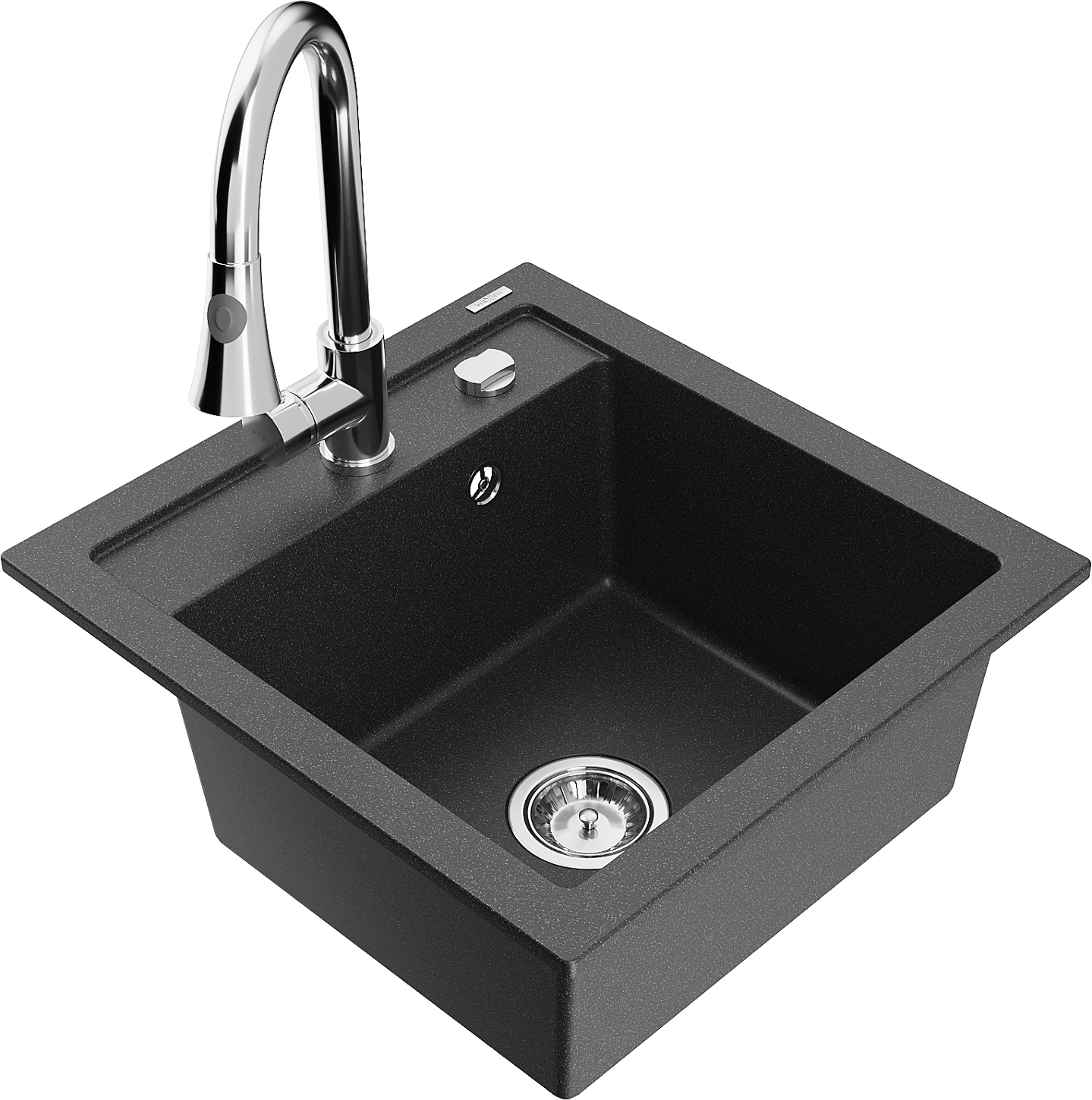 Mexen Vito granitinė virtuvės kriauklė su viena kamera ir maišytuvu Elia, juodas su taškučiais - 6503-76-670101-00