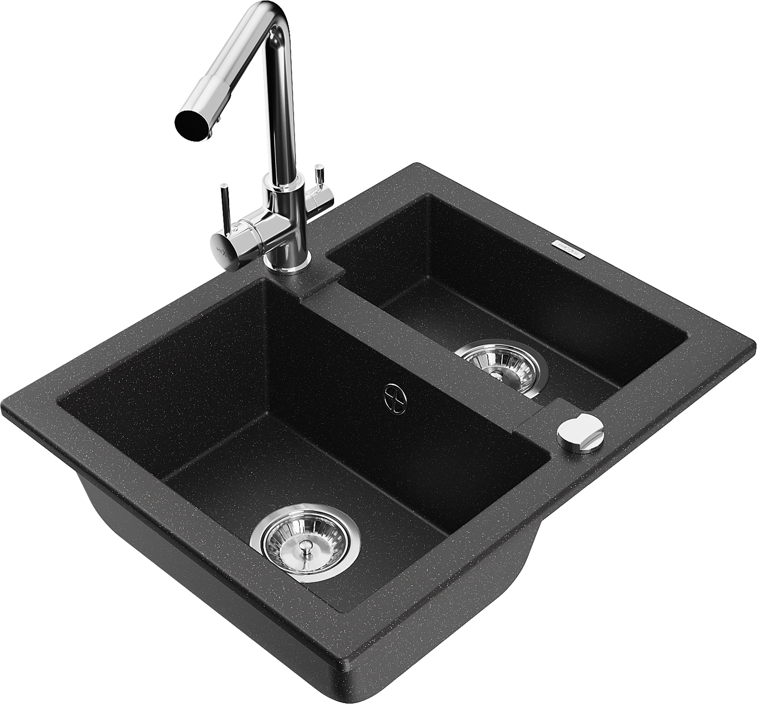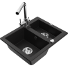 Mexen Carlos granitinė plautuvė 1,5 kamerų su virtuvės maišytuvu Duero, juodas/sidabrinis metalikas - 6518-73-671600-00