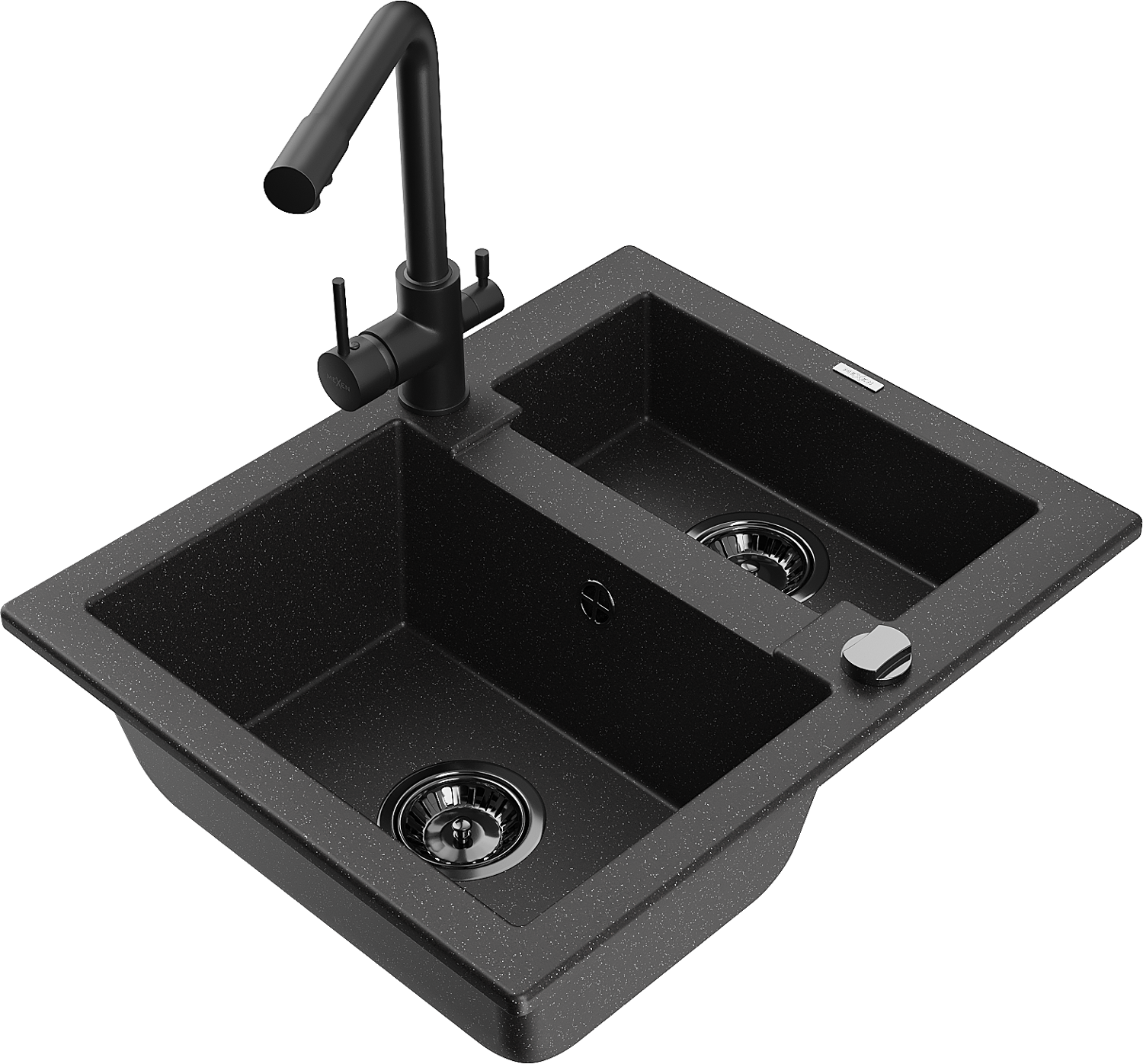 Mexen Carlos granitinis 1,5 kameros plautuvė su virtuvės maišytuvu Duero, juodas/sidabrinis metalikas - 6518-73-671600-70-B