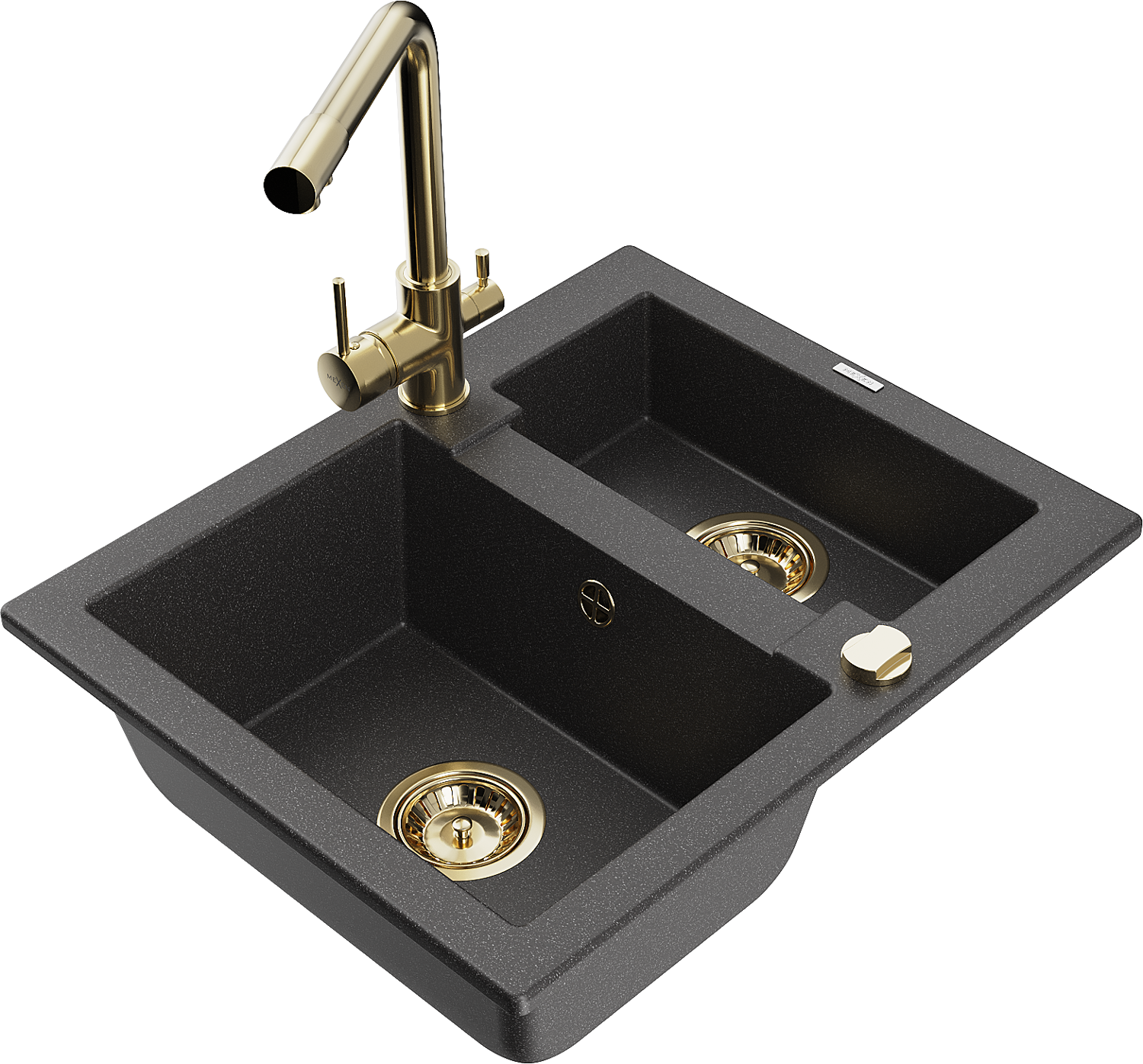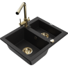 Mexen Carlos granito virtuvės plautuvė 1,5 skylių su virtuviniu maišytuvu Duero, juodas taškuotas - 6518-76-671600-50