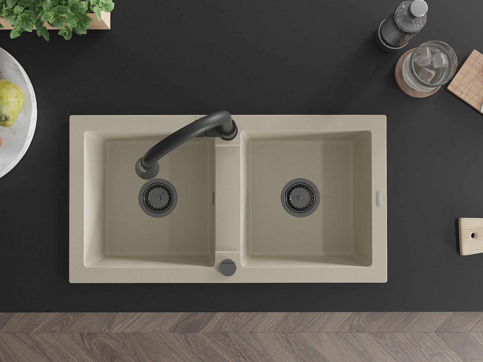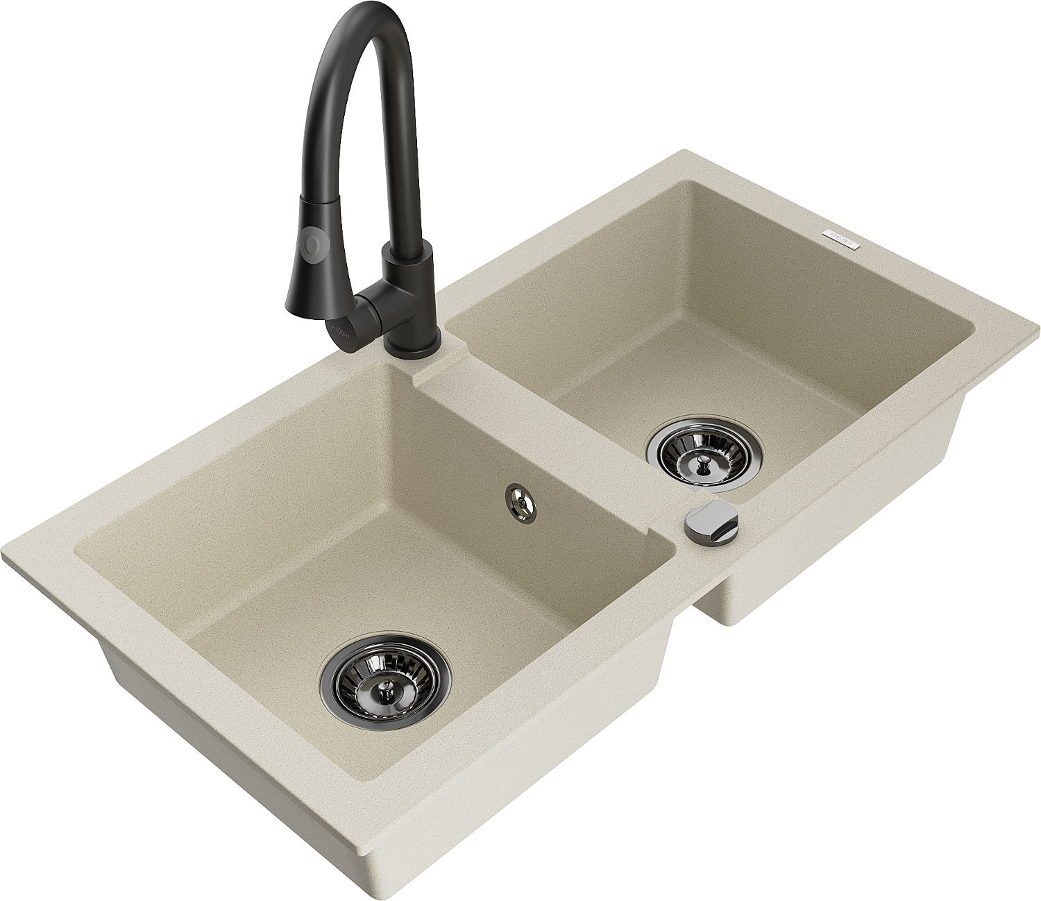 Mexen Mario granitinis dviejų skyrių plautuvas su virtuviniu maišytuvu Elia, smėlio - 6504-69-670101-70