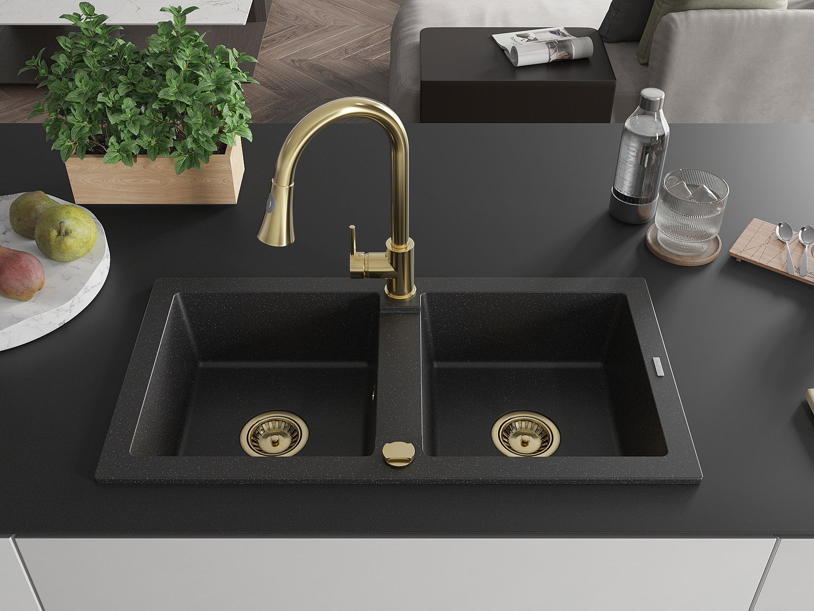 Kriauklės paviršius yra atsparūs dėmėms ir spalvos pasikeitimui, dėl kurio lengva valyti ir ilgą laiką išlaikyti savo spalvą. Estetinis ir praktiškai papildantis kiekvieną virtuvę.