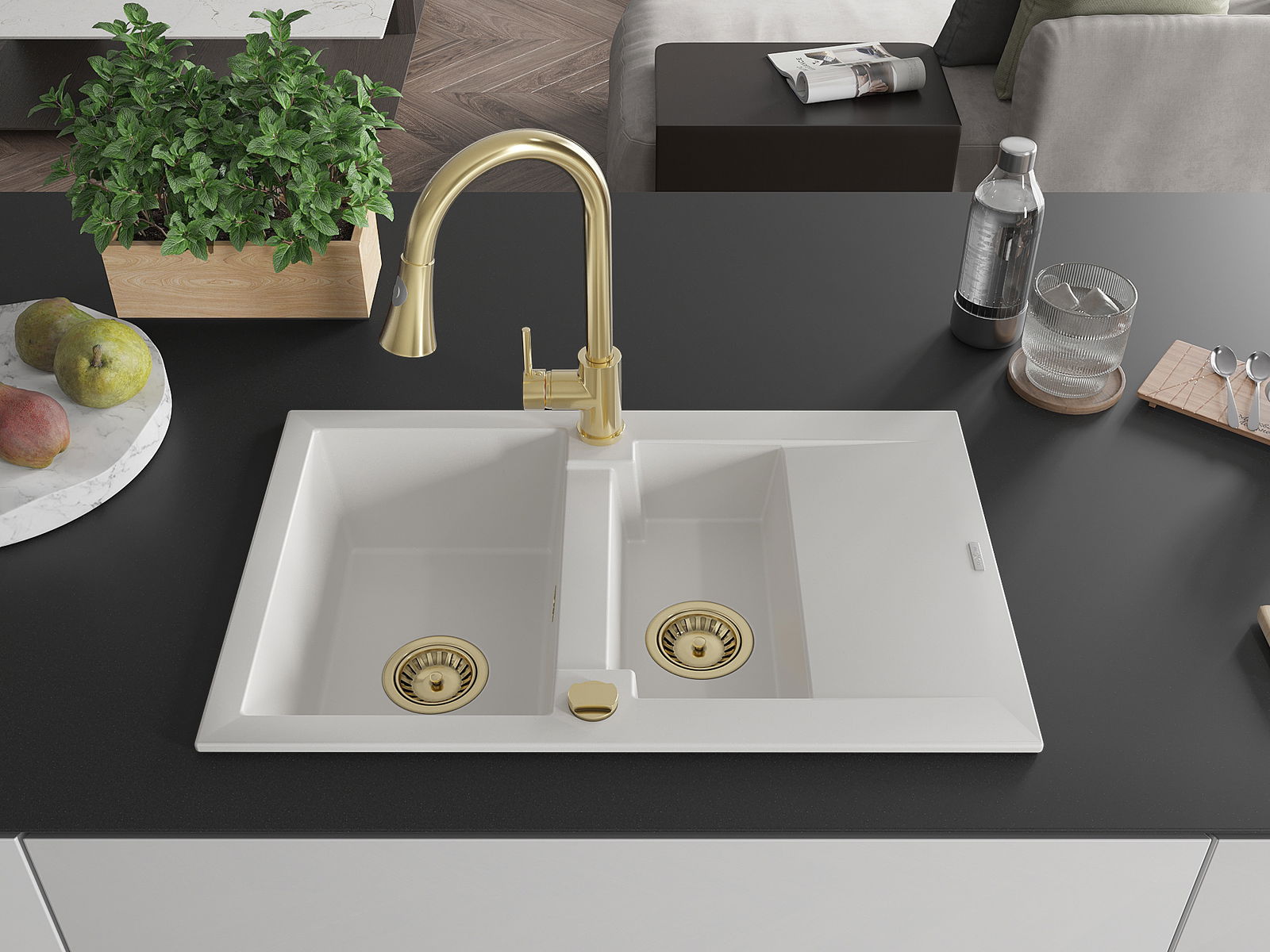Kriauklės paviršius yra atsparūs dėmėms ir spalvos pasikeitimui, dėl kurio lengva valyti ir ilgą laiką išlaikyti savo spalvą. Estetinis ir praktiškai papildantis kiekvieną virtuvę.