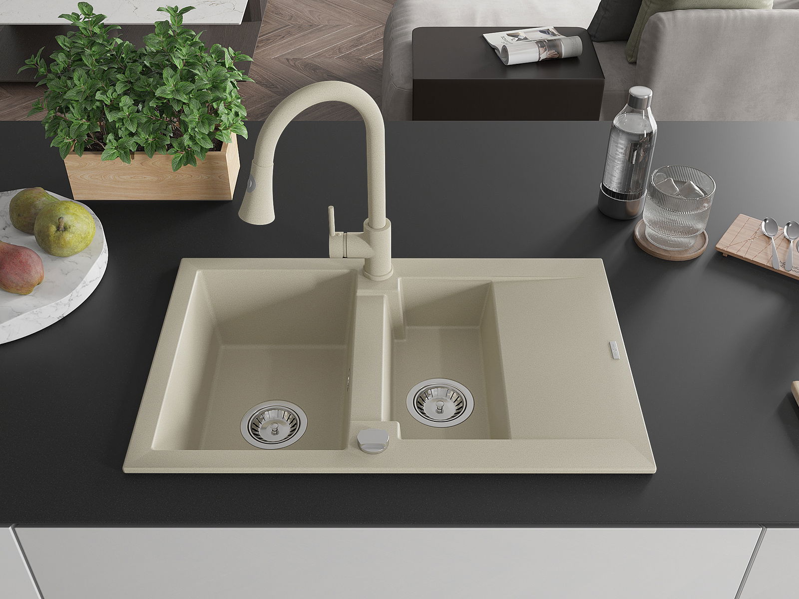 Kriauklės paviršius yra atsparūs dėmėms ir spalvos pasikeitimui, dėl kurio lengva valyti ir ilgą laiką išlaikyti savo spalvą. Estetinis ir praktiškai papildantis kiekvieną virtuvę.