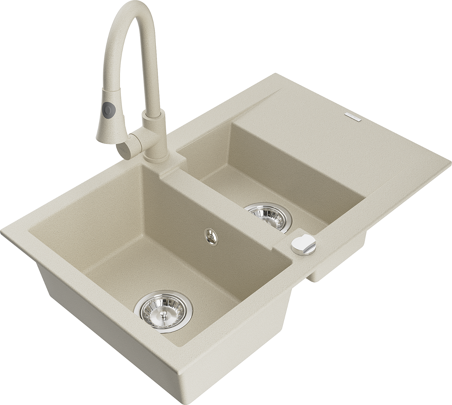 Mexen Gaspar granitinė 1,5 sekcijų kriauklė su nusausintuvu ir virtuviniu maišytuvu Elia, smėlio spalvos - 6507-69-670101-69