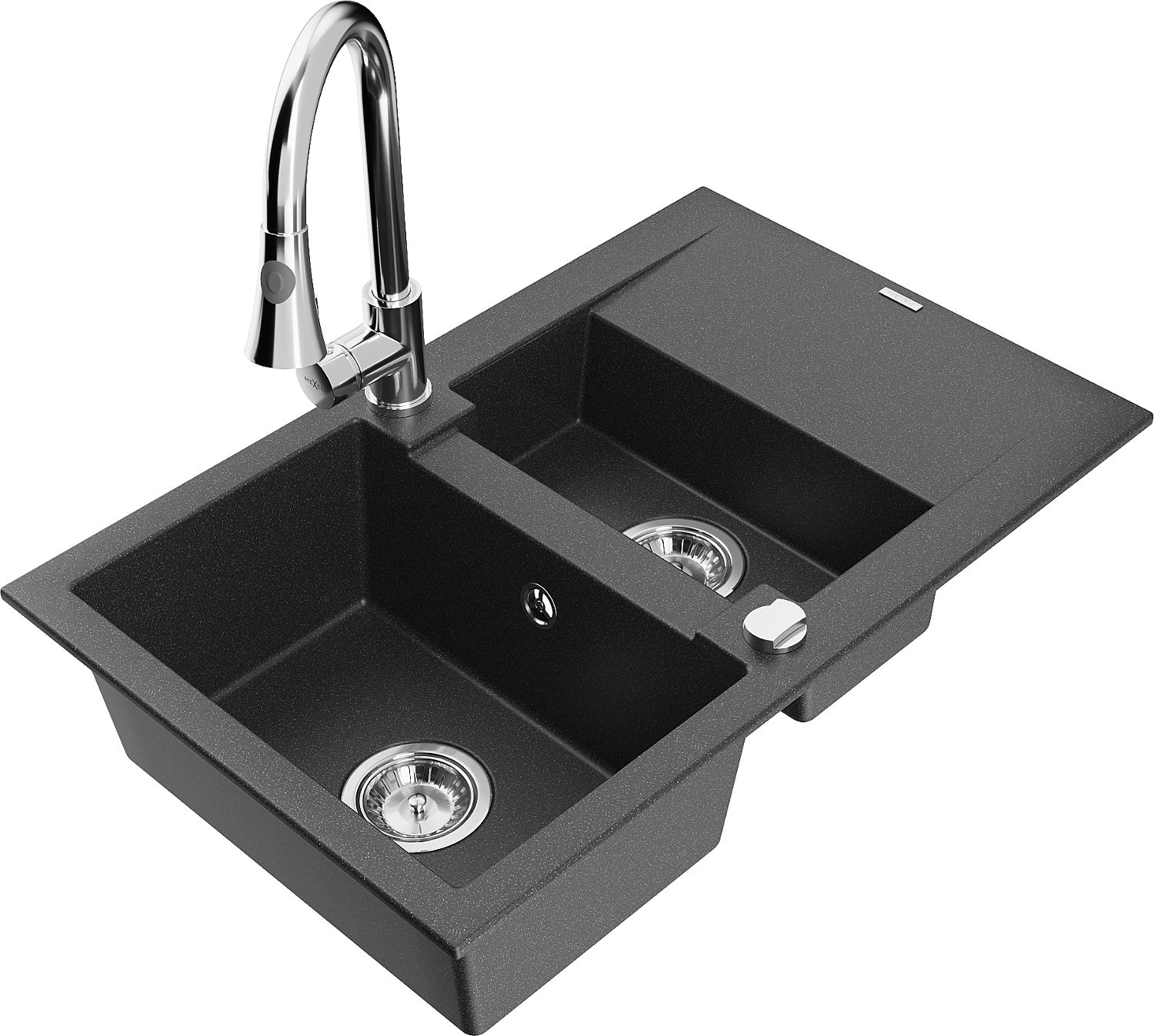 Mexen Gaspar granitinis kriauklė 1,5 skylių su nuvarvėjimo ir virtuvės maišytuvu Elia, juodas su dėmėmis - 6507-76-670101-00