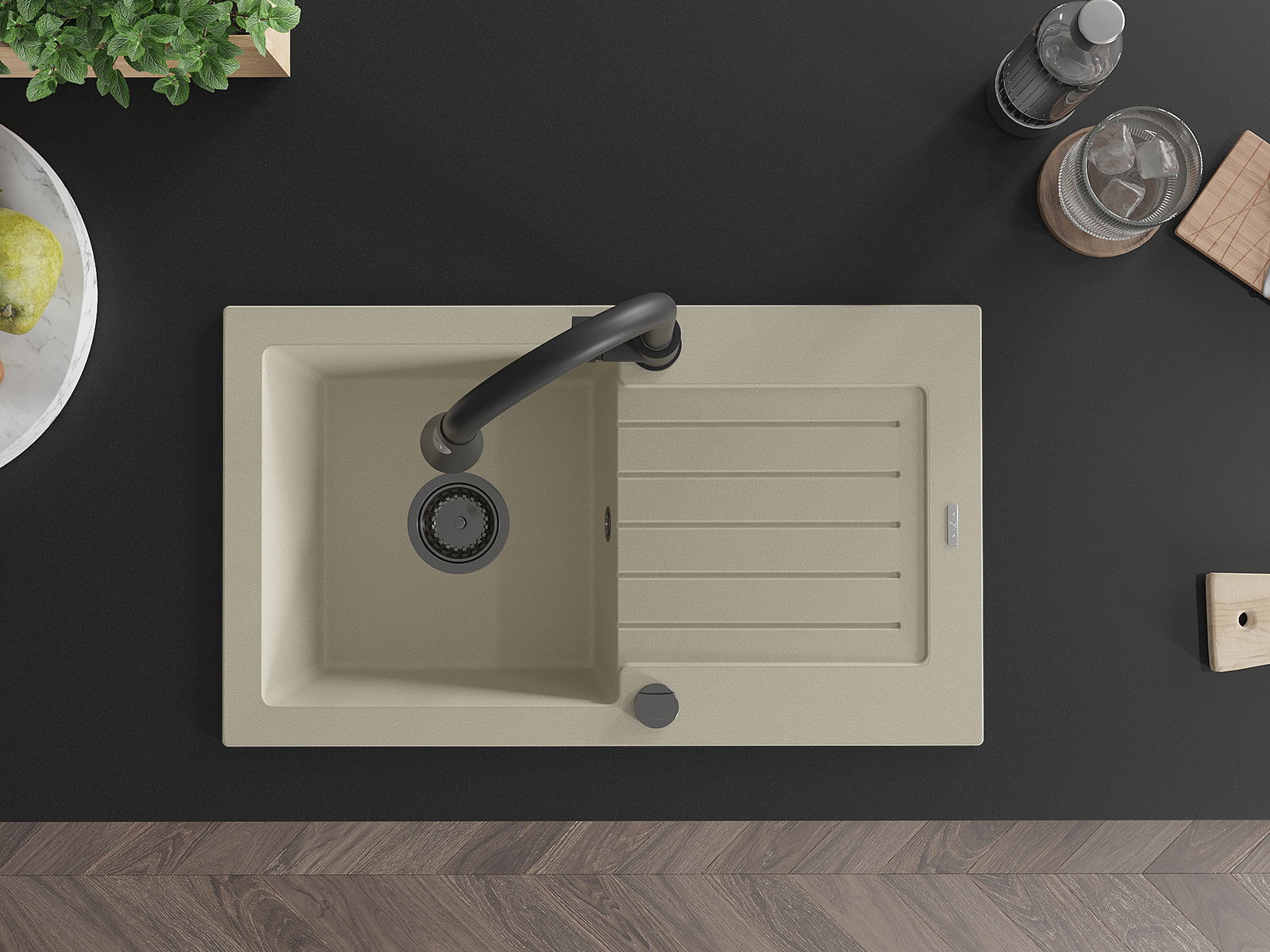 Kriauklės paviršius yra atsparūs dėmėms ir spalvos pasikeitimui, dėl kurio lengva valyti ir ilgą laiką išlaikyti savo spalvą. Estetinis ir praktiškai papildantis kiekvieną virtuvę.