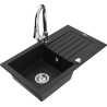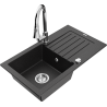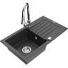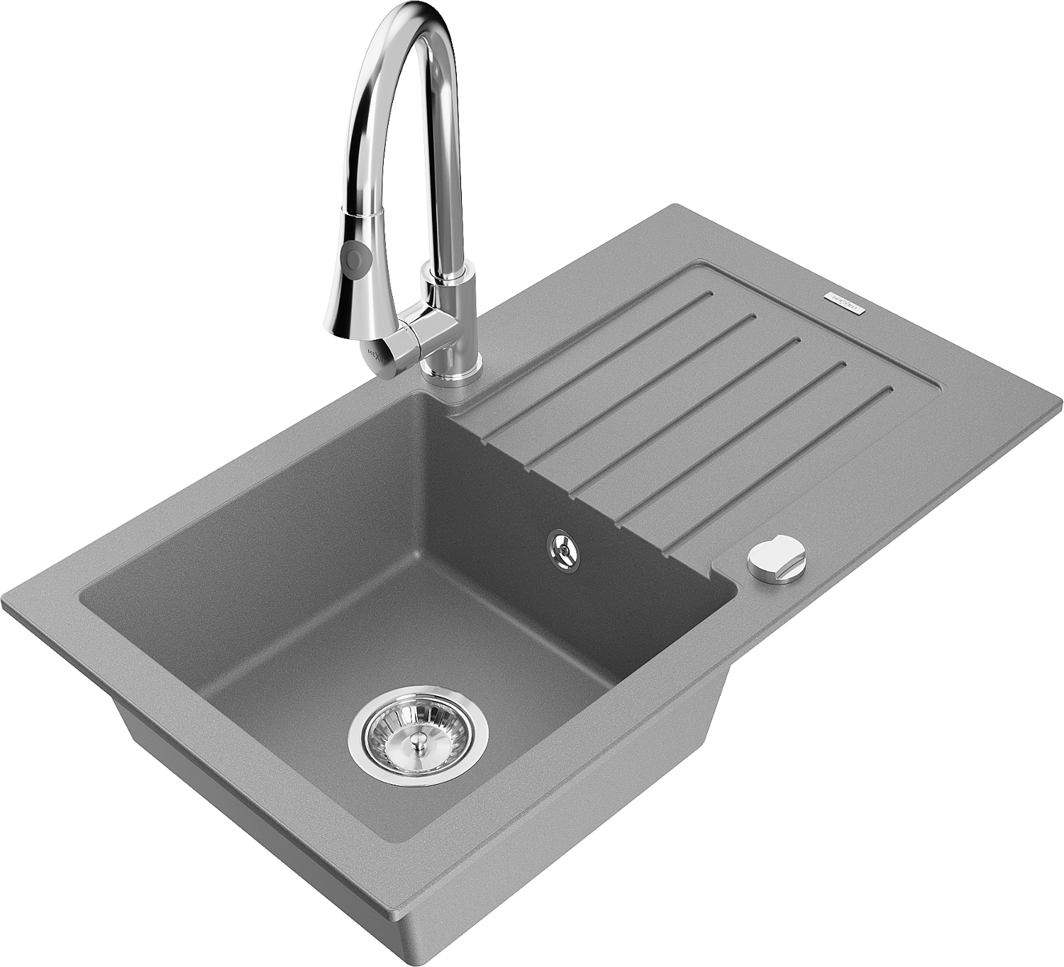 Mexen Pablo granitinė vienos kameros kriauklė su nuteka, pilka ir virtuviniu maišytuvu Elia - 6510-71-670101-00