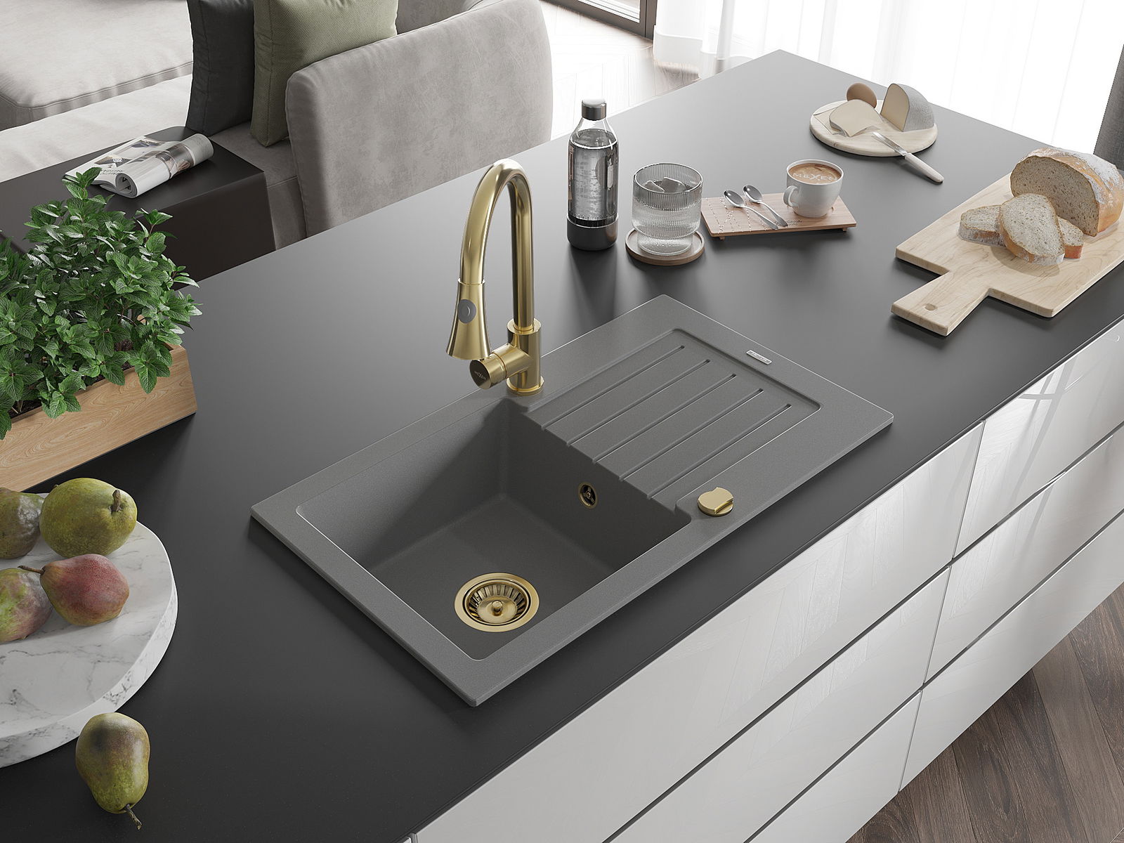 Kriauklės paviršius yra atsparus dėmėms ir spalvos pokyčiams, todėl jį lengva prižiūrėti ir jis išlaiko savo spalvą ilgą laiką. Estetiškai ir praktiškai papildo kiekvieną virtuvę.