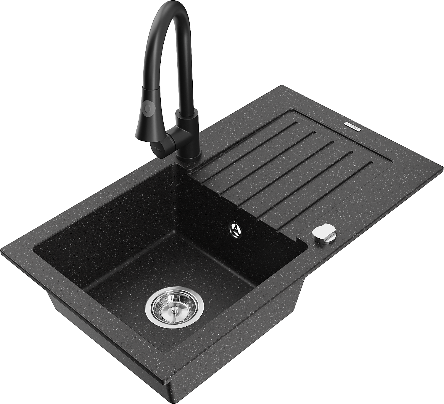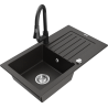 Mexen Pablo granitinė plautuvė su viena kamera, nuvarvėtu ir virtuvinio čiaupo rinkiniu Elia, juodas/sidabrinis metalikas