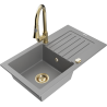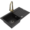 Mexen Pablo vieno dubens granito plautuvė su nusausintuvu ir virtuviniu maišytuvu Elia, juodas/auksinis metalikas