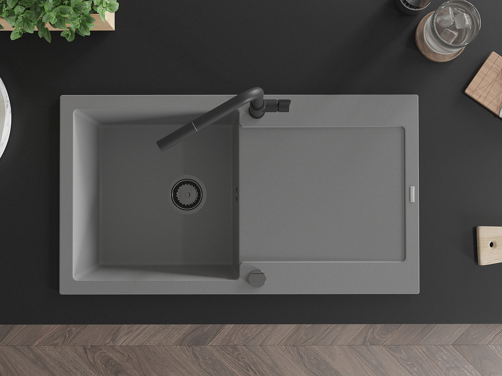 Mexen Leo granitinis plautuvės komplektas su viena kamera ir nutekėjimo zona bei Flora virtuvės maišytuvu, pilkas - 6501-71-670?