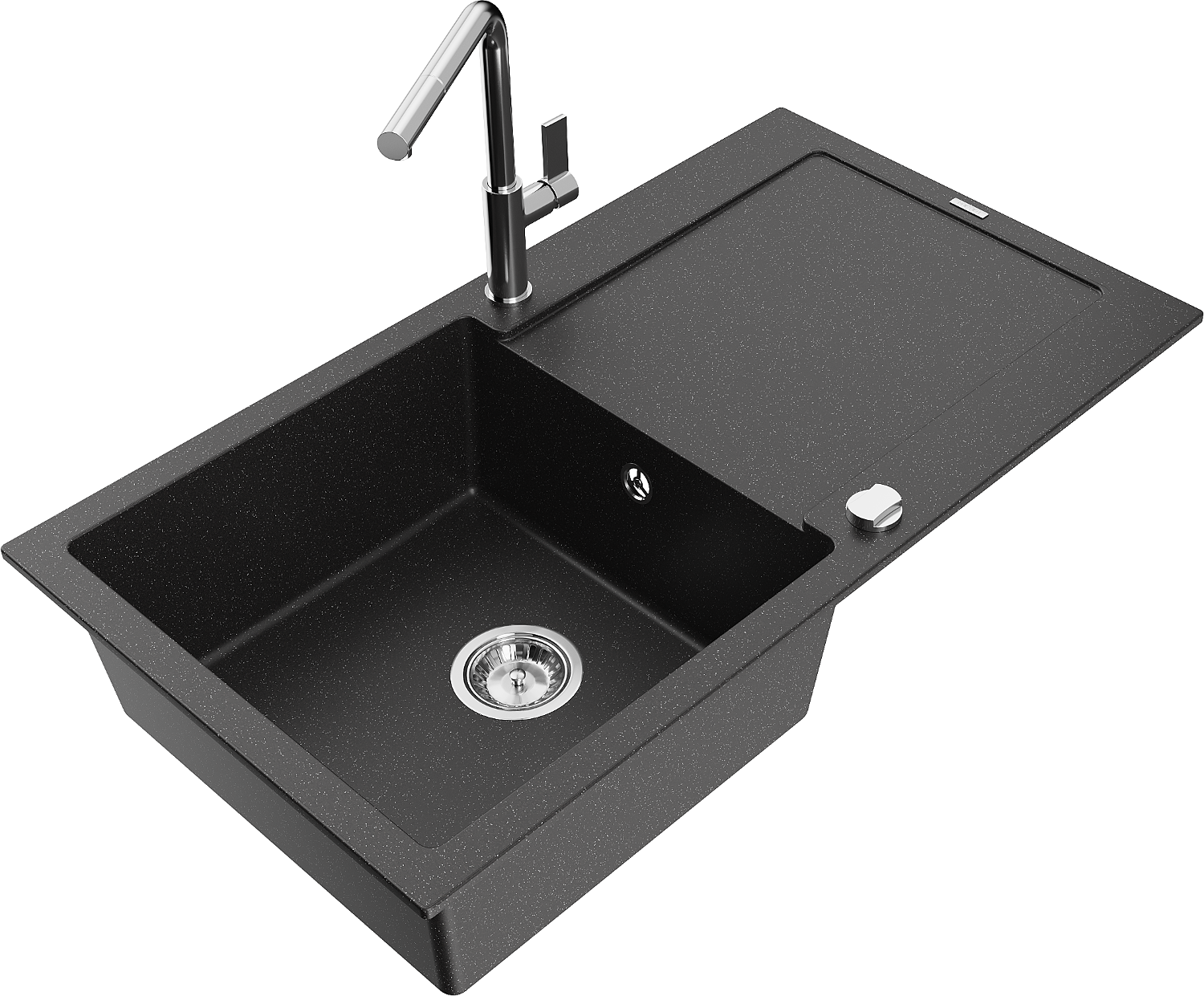 Mexen Leo granitinė plautuvė su vienu skyriumi, lašintu ir virtuviniu maišytuvu Flora, juodas/sidabrinis metalikas - 6501-73-67?