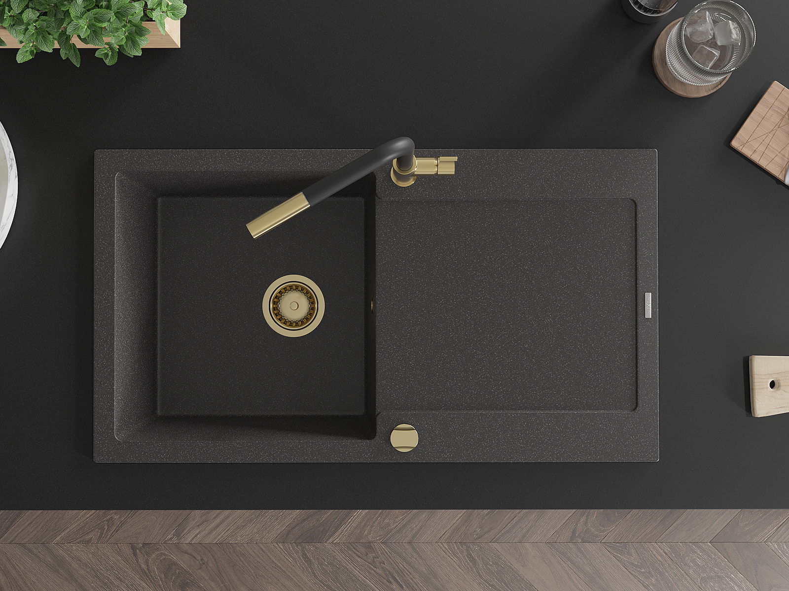 Kriauklės paviršius yra atsparūs dėmėms ir spalvos pasikeitimui, dėl kurio lengva valyti ir ilgą laiką išlaikyti savo spalvą. Estetinis ir praktiškai papildantis kiekvieną virtuvę.