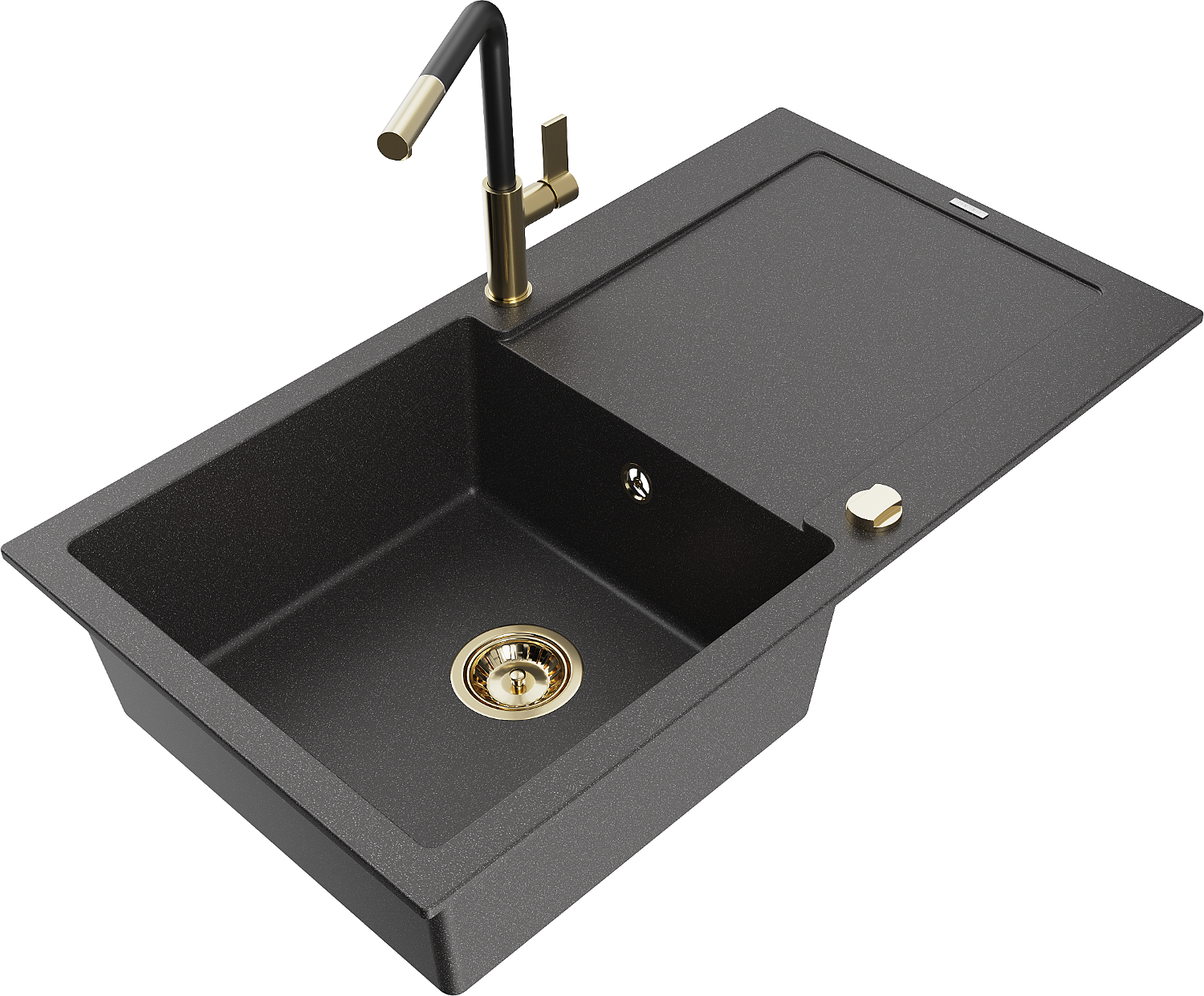 Mexen Leo granitinė vienos kameros kriauklė su drenažu ir virtuvės maišytuvu Flora, juoda taškuota - 6501-76-670401-57-G