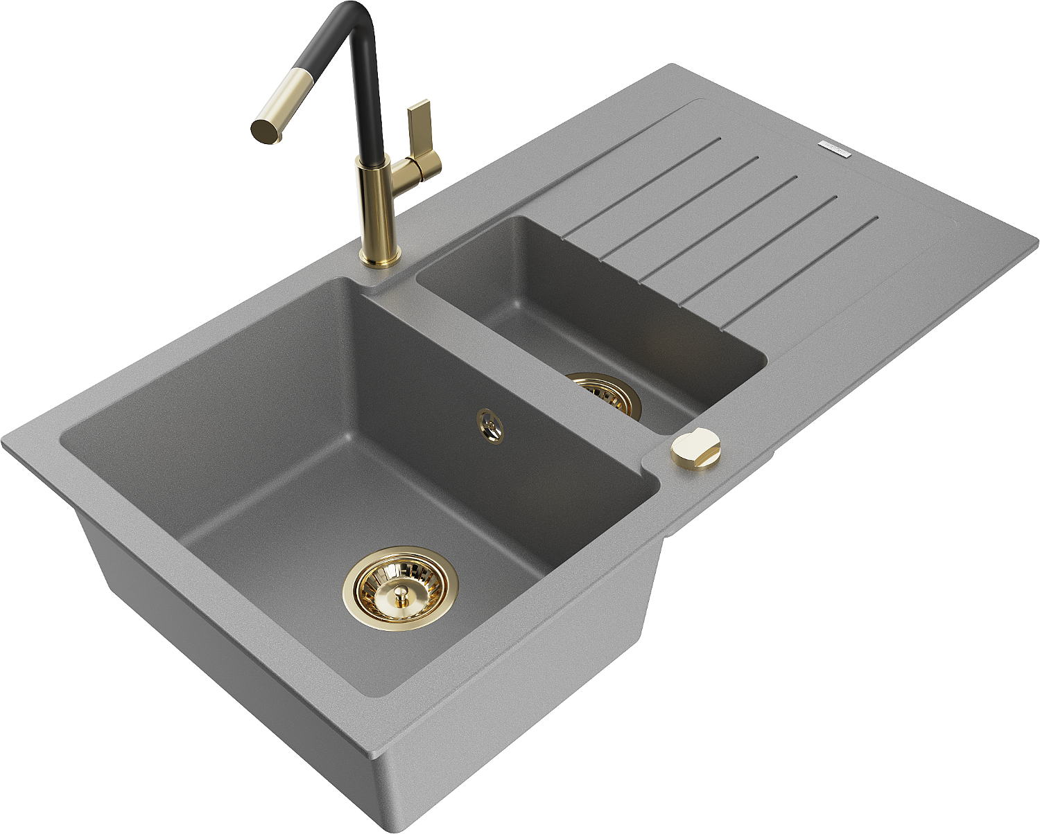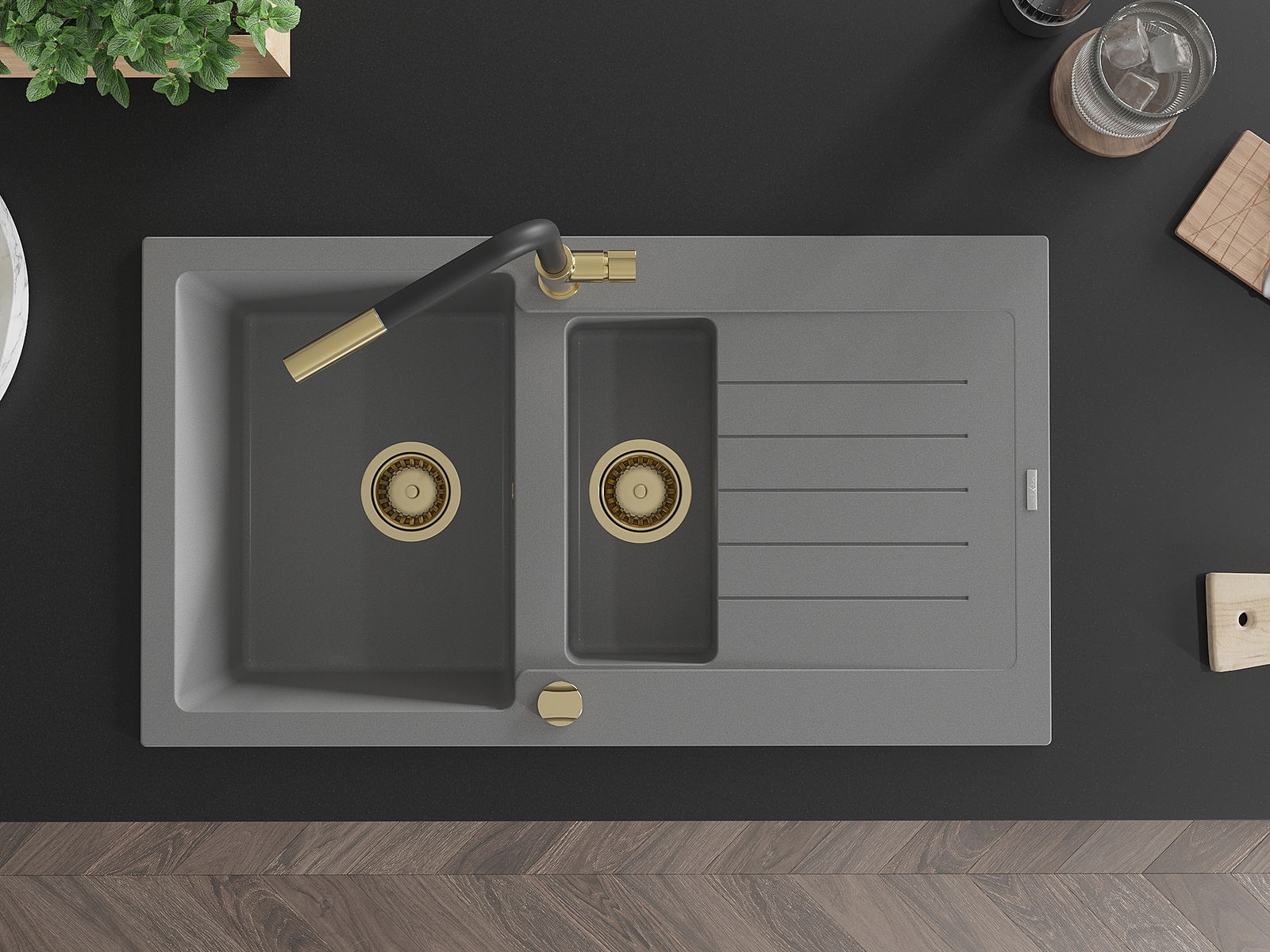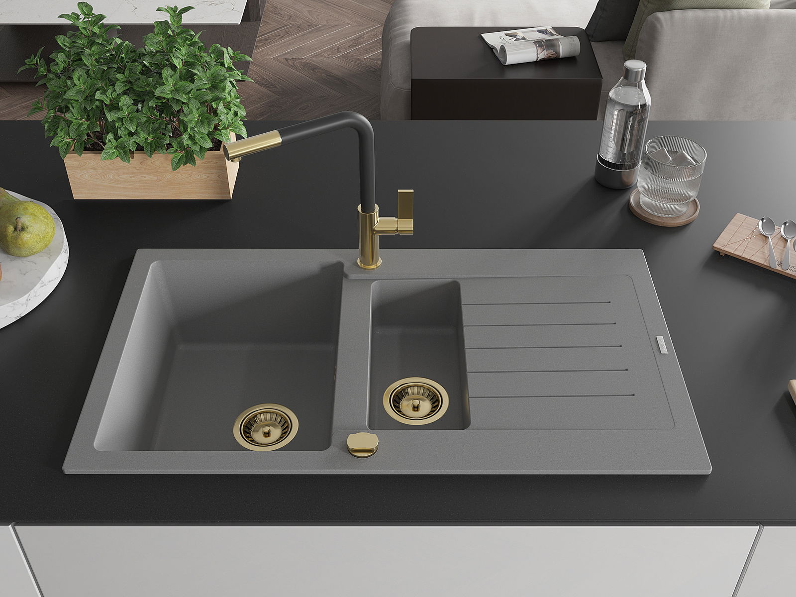 Mexen Matias granito plautuvė 1,5 skyrių su nusausintuvu ir virtuviniu maišytuvu Flora, pilka - 6502-71-670401-57-G