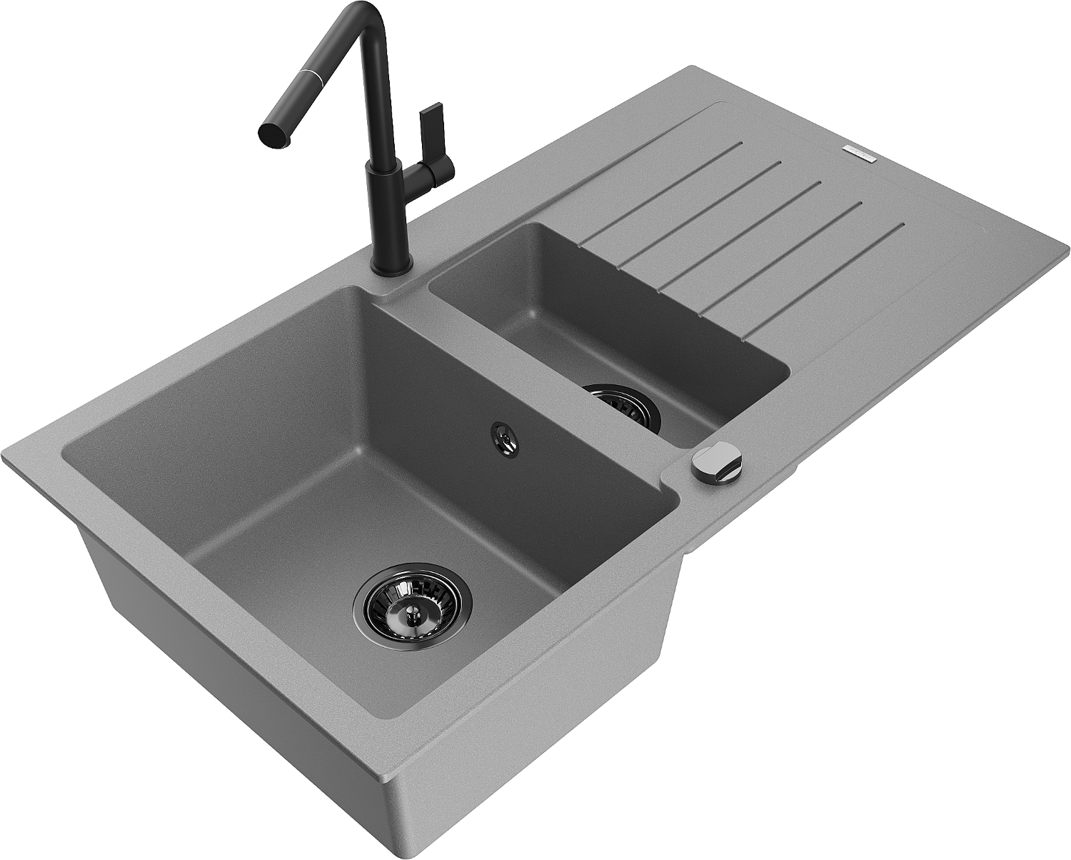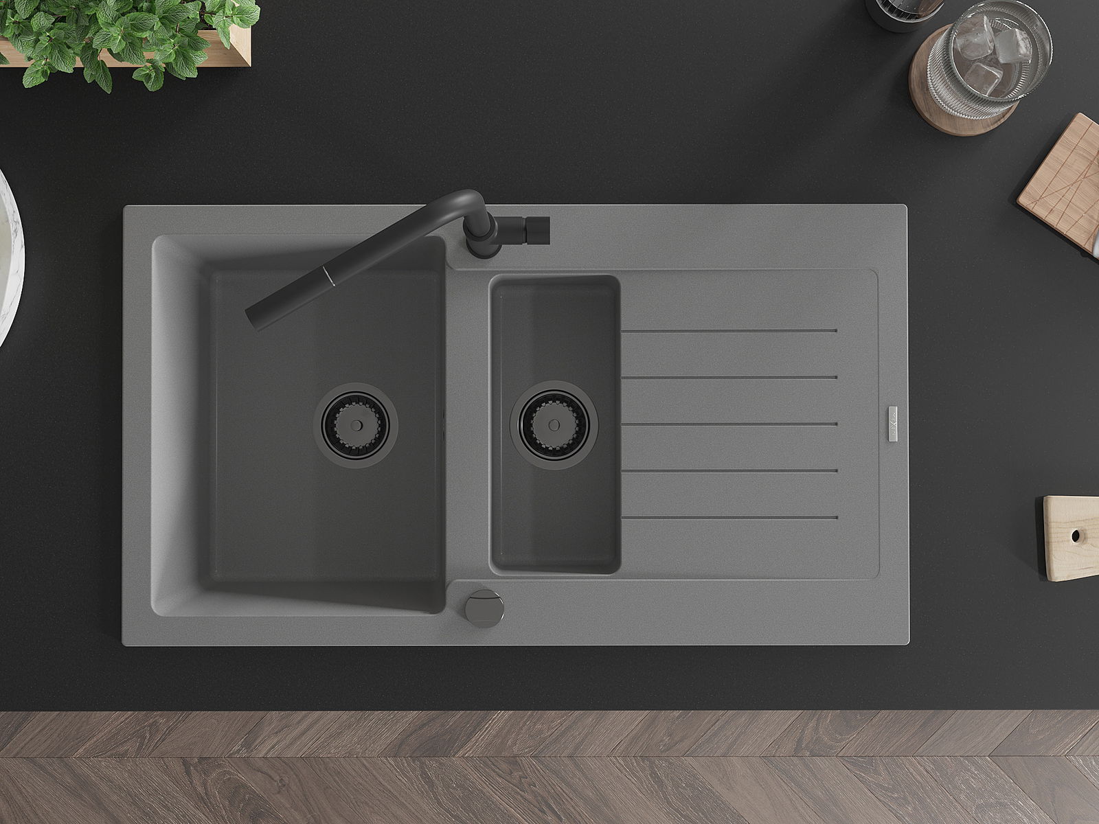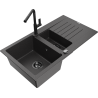 Mexen Matias granito plautuvė 1,5 dubens su nuovertėju ir Flora virtuvės čiaupu, pilka - 6502-71-670401-70-B
