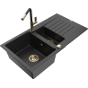 Mexen Matias akmens masės virtuvės plautuvė 1,5 kompozicinis su nusausintuvu ir virtuvės maišytuvu Flora, juoda/auksinė - 6502-?