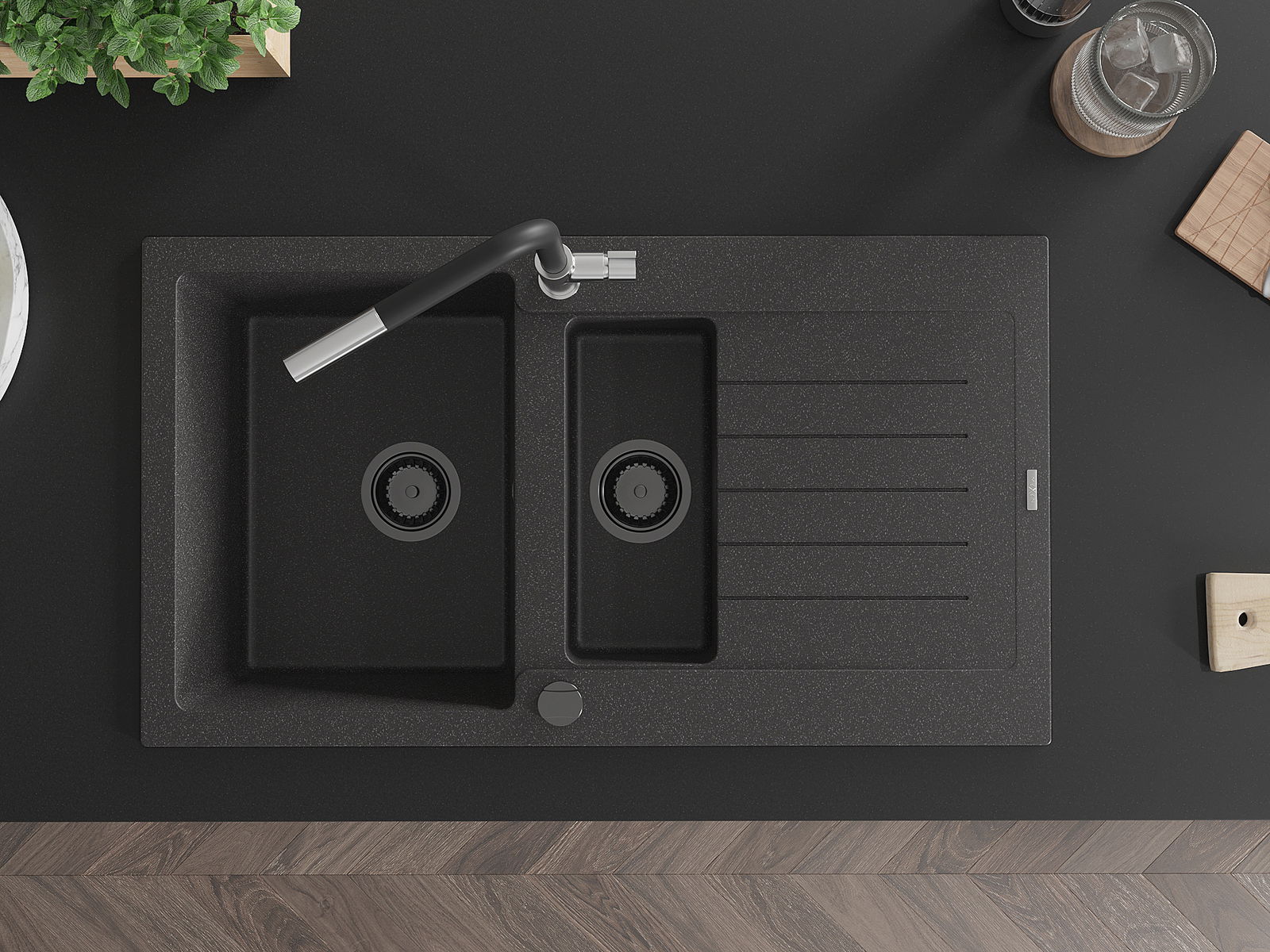 Kriauklės paviršius yra atsparūs dėmėms ir spalvos pasikeitimui, dėl kurio lengva valyti ir ilgą laiką išlaikyti savo spalvą. Estetinis ir praktiškai papildantis kiekvieną virtuvę.
