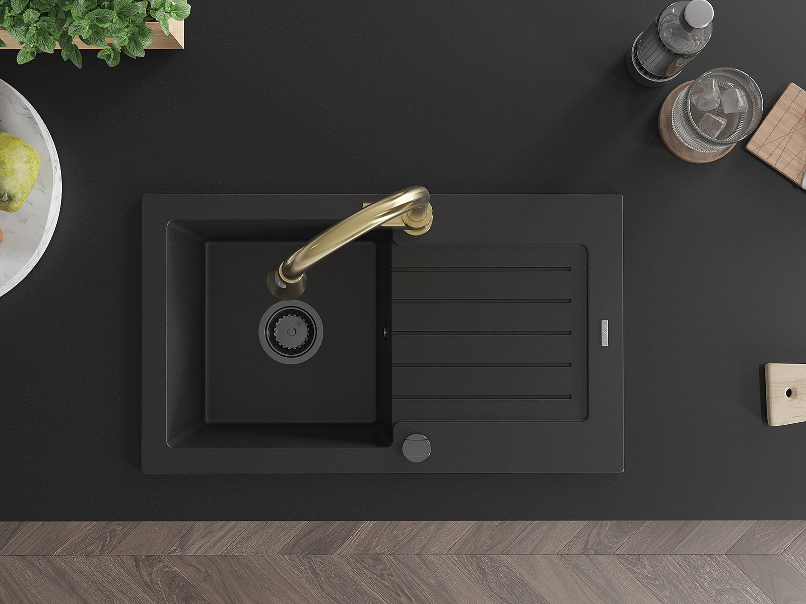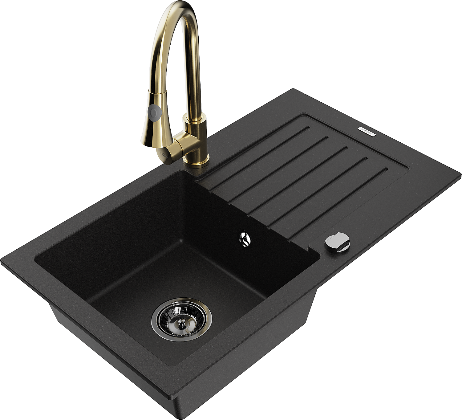 Mexen Pablo granitinis virtuvės plautuvė su 1 plautuve ir Elia virtuvės maišytuvu, juodos spalvos - 6510-77-670101-50-B