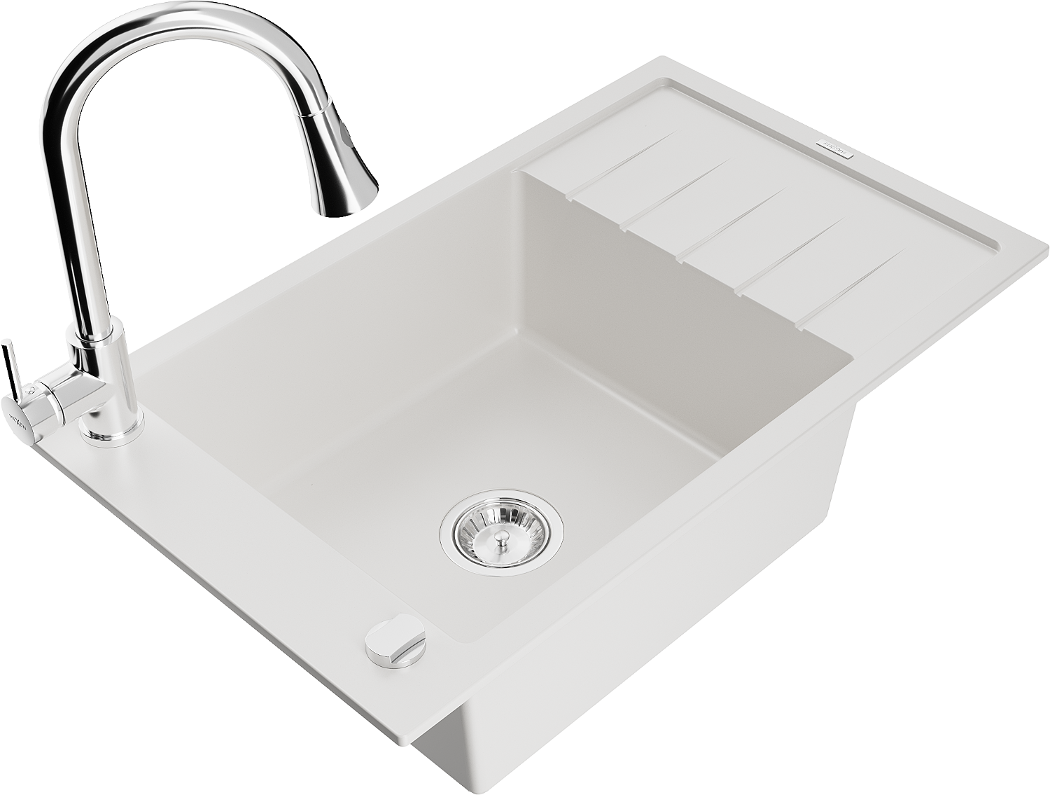 Mexen Elias vienos komoros granitinė plautuvė su nuvarvėjimu ir Elia virtuvinis čiaupas, baltas - 6511-20-670101-00