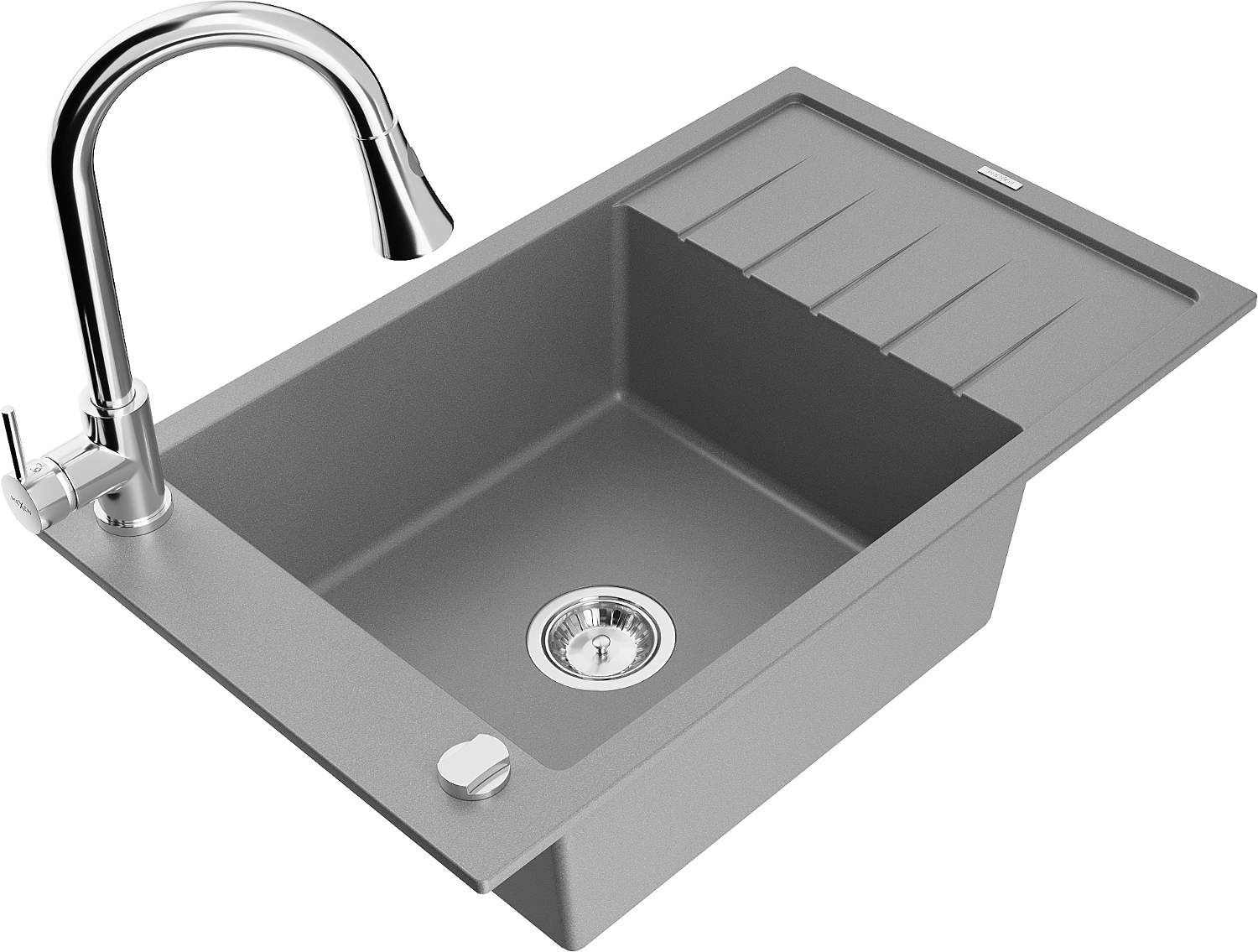 Mexen Elias granitinė vienos kameros plautuvė su drenažu ir virtuviniu maišytuvu Elia, pilka - 6511-71-670101-00