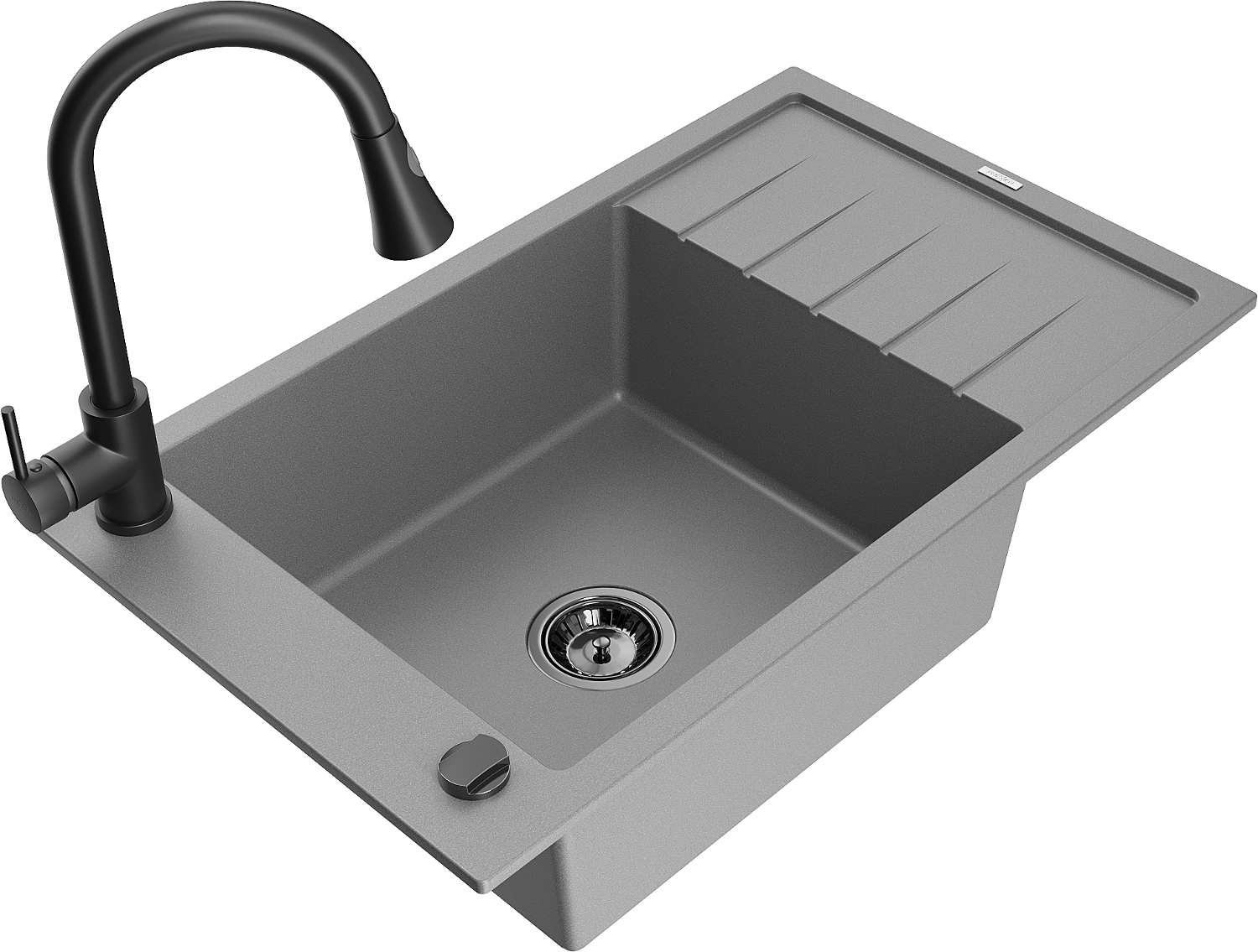 Mexen Elias granitinis vienos kameros plautuvas su nusausintuvu ir virtuviniu maišytuvu Elia, pilkas - 6511-71-670101-70-B