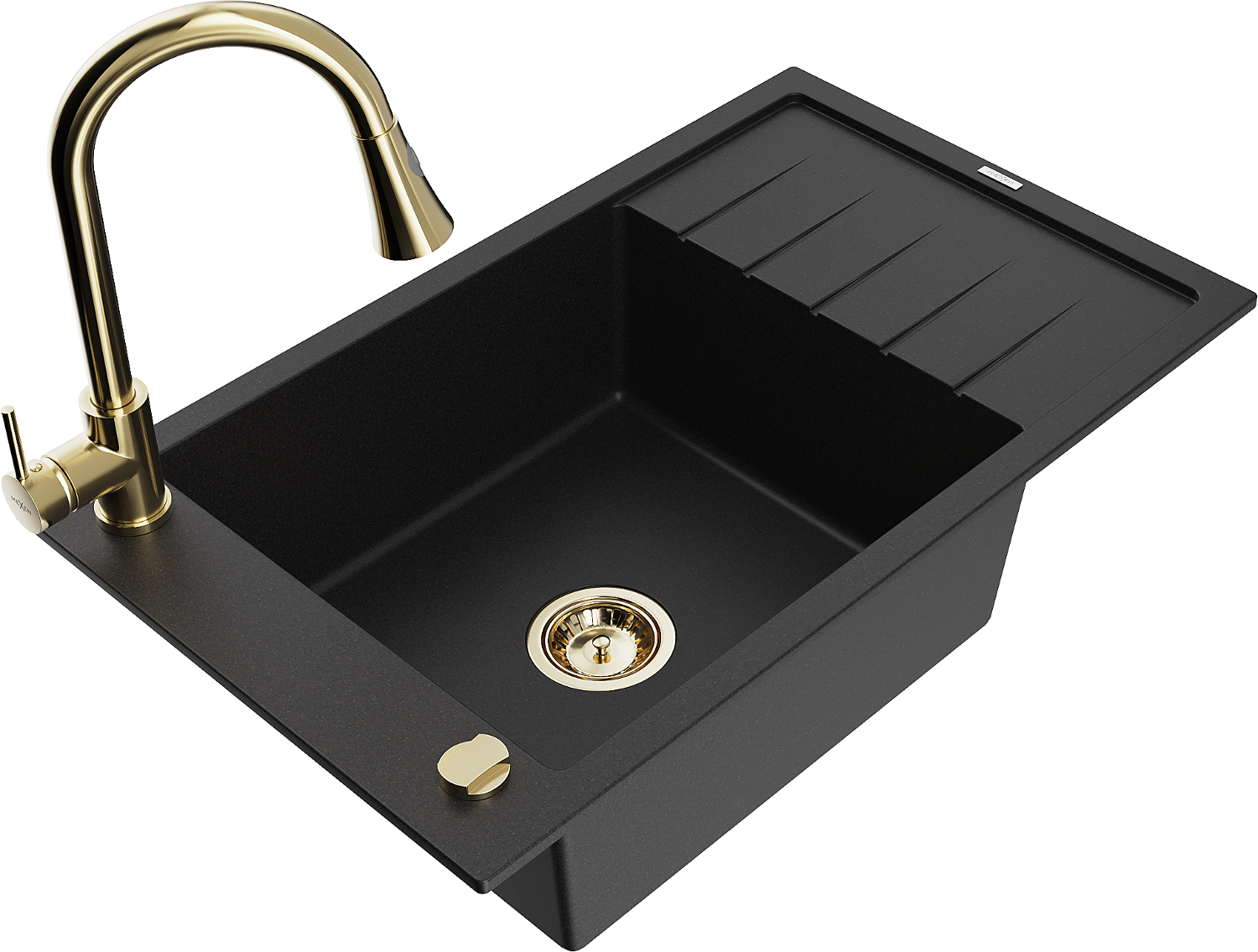 Mexen Elias vienos sekcijos granitinė plautuvė su nusausintuvu ir virtuviniu maišytuvu Elia, juoda - 6511-77-670101-50
