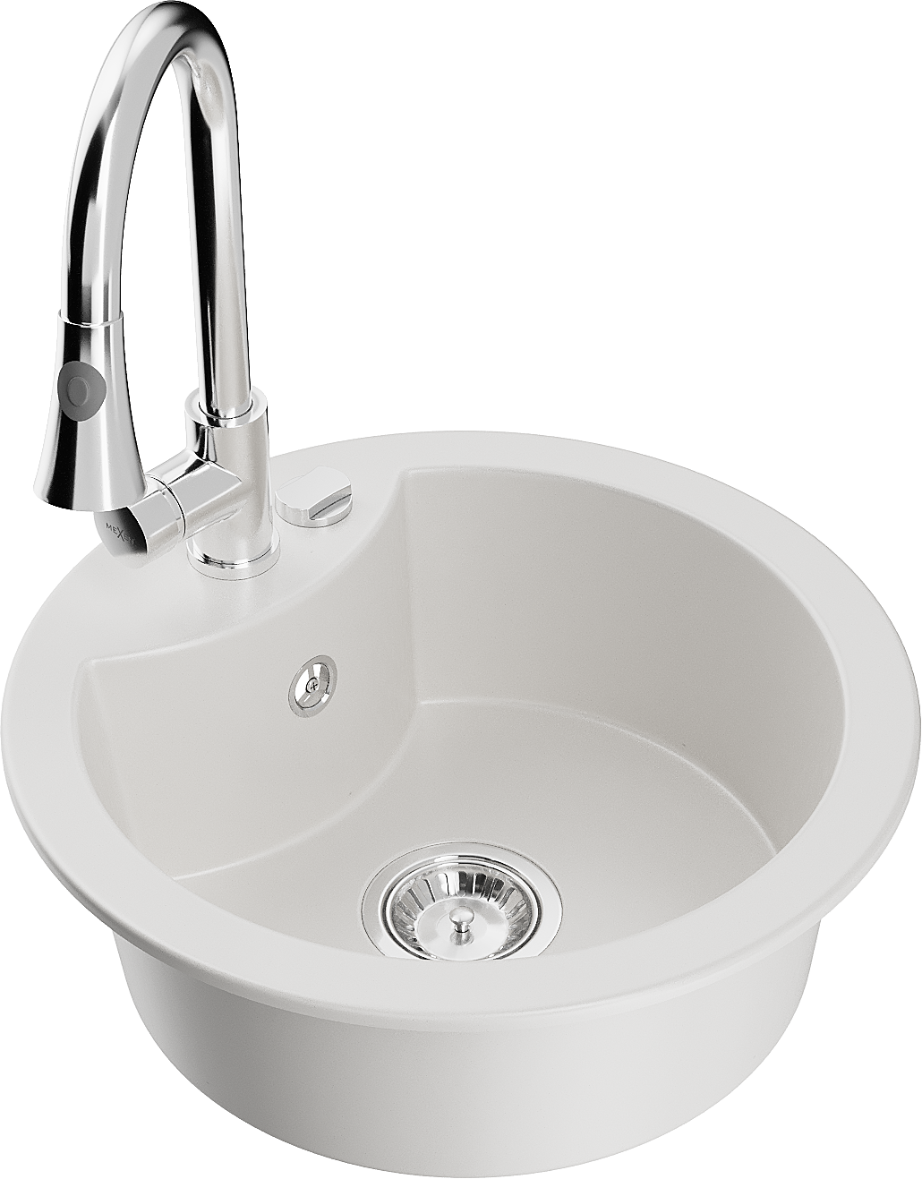 Mexen Diego vieno dubens granitinė virtuvinė plautuvė su Elia maišytuvu, balta - 6512-20-670101-00
