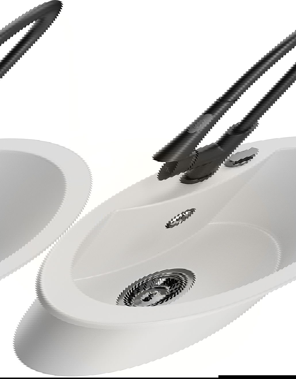Mexen Diego granitinė virtuvės plautuvė 1-skyriumi su virtuviniu maišytuvu Elia, balta - 6512-20-670101-70
