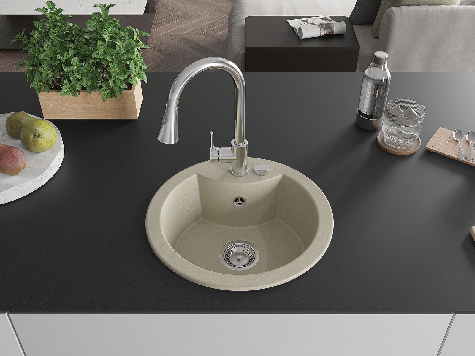 Kriauklės paviršius yra atsparūs dėmėms ir spalvos pasikeitimui, dėl kurio lengva valyti ir ilgą laiką išlaikyti savo spalvą. Estetinis ir praktiškai papildantis kiekvieną virtuvę.