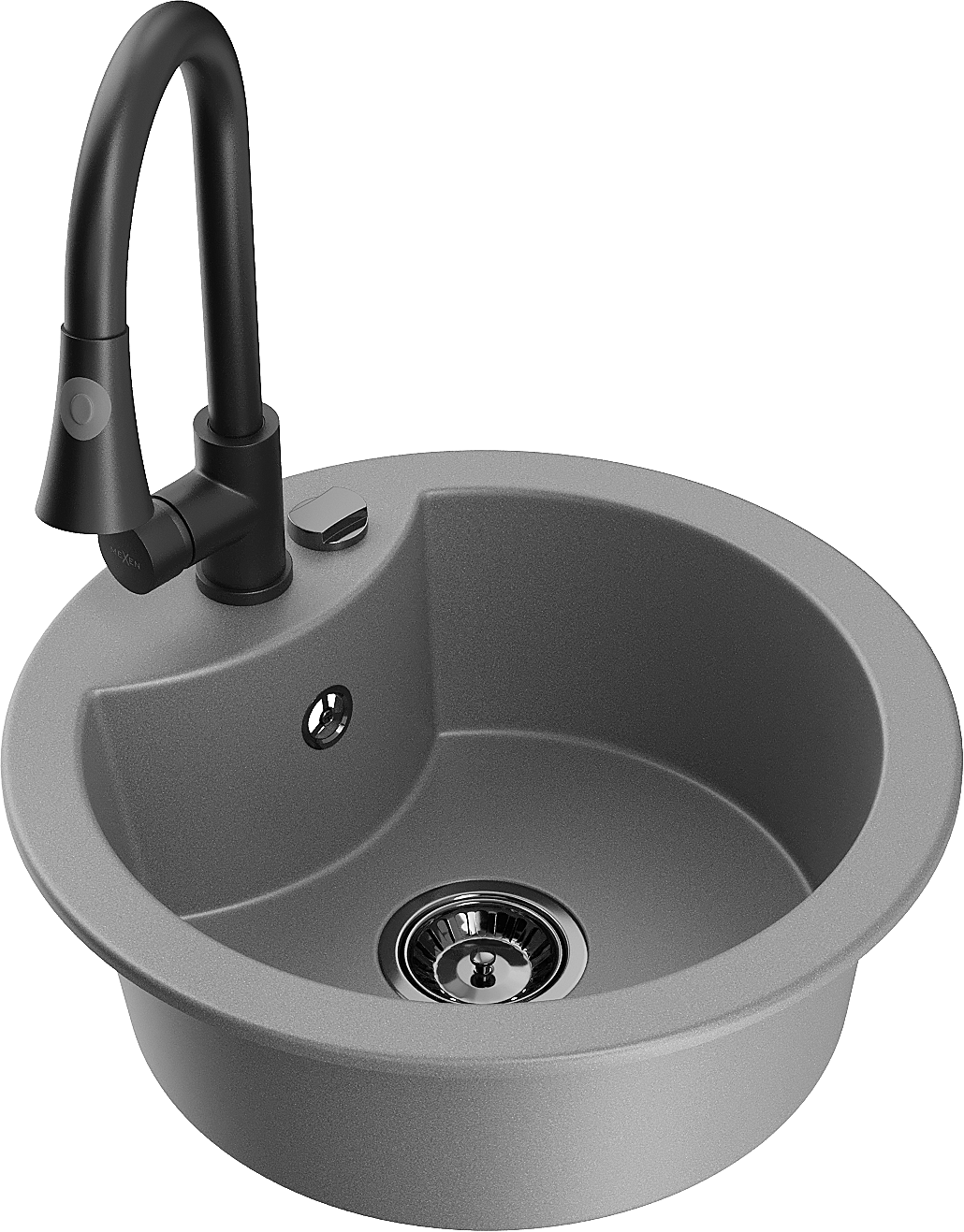 Mexen Diego granitinis vienos kameros plautuvė su virtuviniu maišytuvu Elia, pilka - 6512-71-670101-70-B