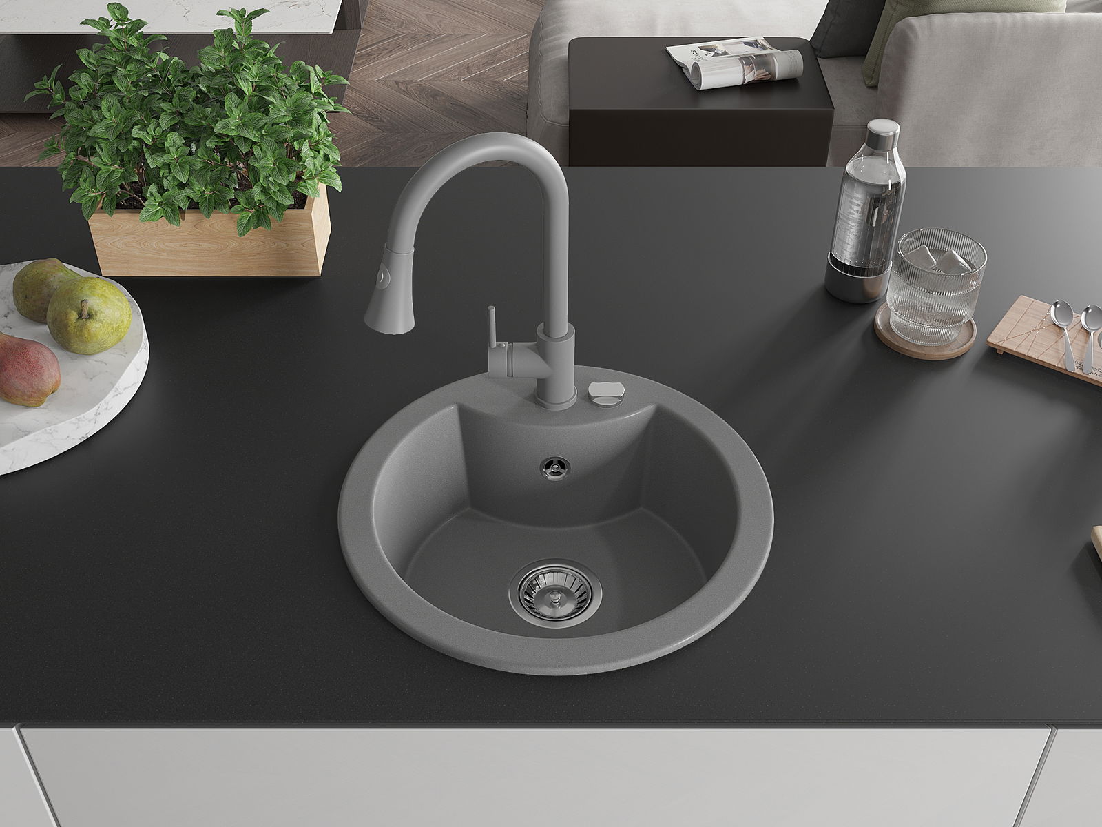Kriauklės paviršius yra atsparūs dėmėms ir spalvos pasikeitimui, dėl kurio lengva valyti ir ilgą laiką išlaikyti savo spalvą. Estetinis ir praktiškai papildantis kiekvieną virtuvę.