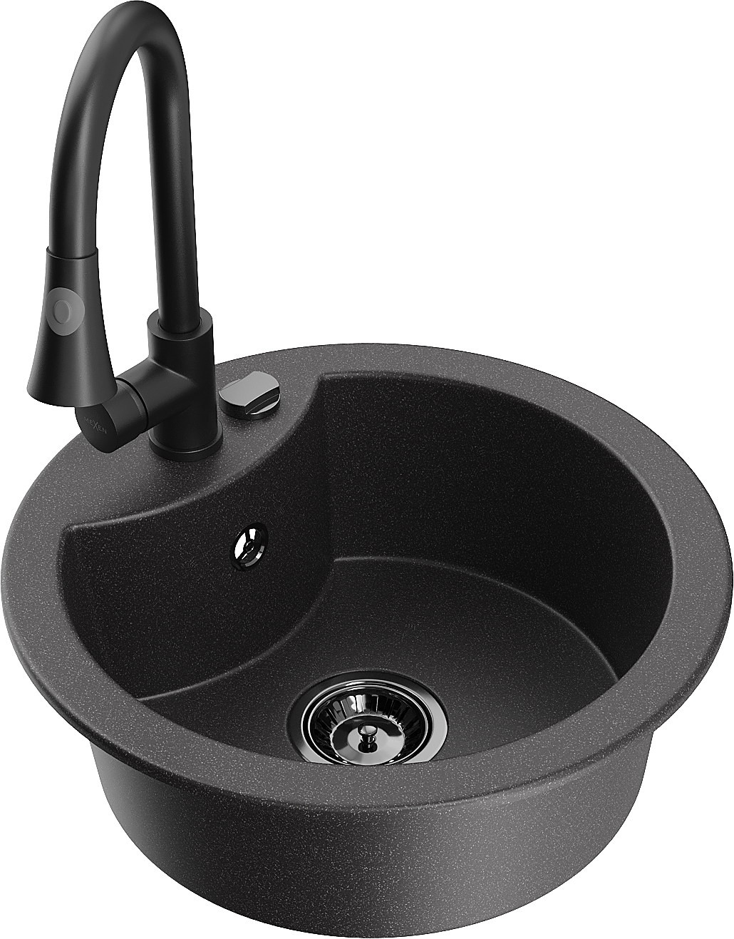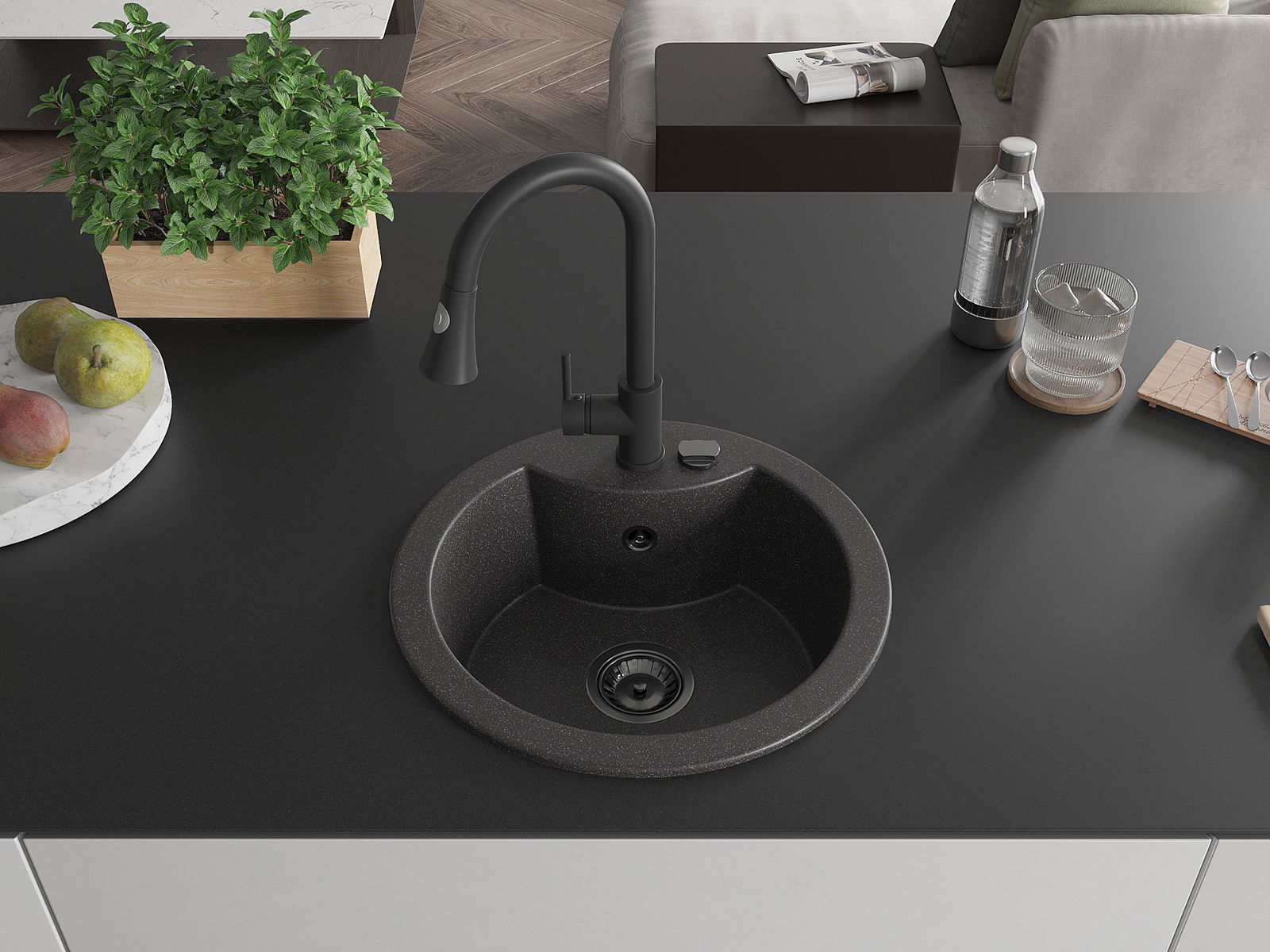 Mexen Diego granitinis virtuvės kriauklė 1 kamerinis su Elia maišytuvu, juodas taškuotas - 6512-76-670101-70-B
