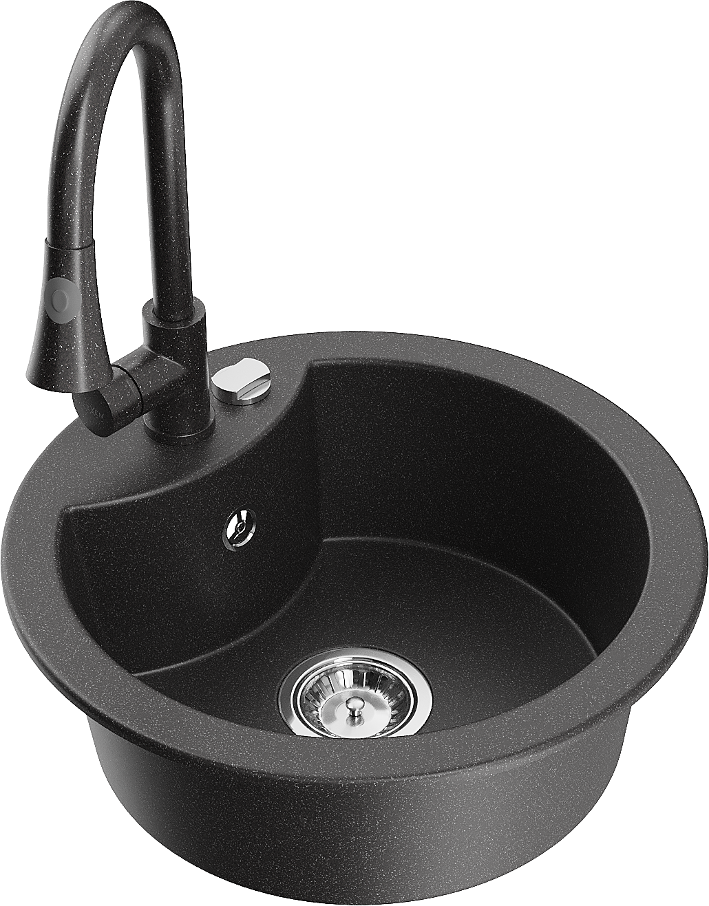 Mexen Diego vienos kameros granitinis virtuvės plautuvas su Elia virtuviniu maišytuvu, juodas taškuotas - 6512-76-670101-76