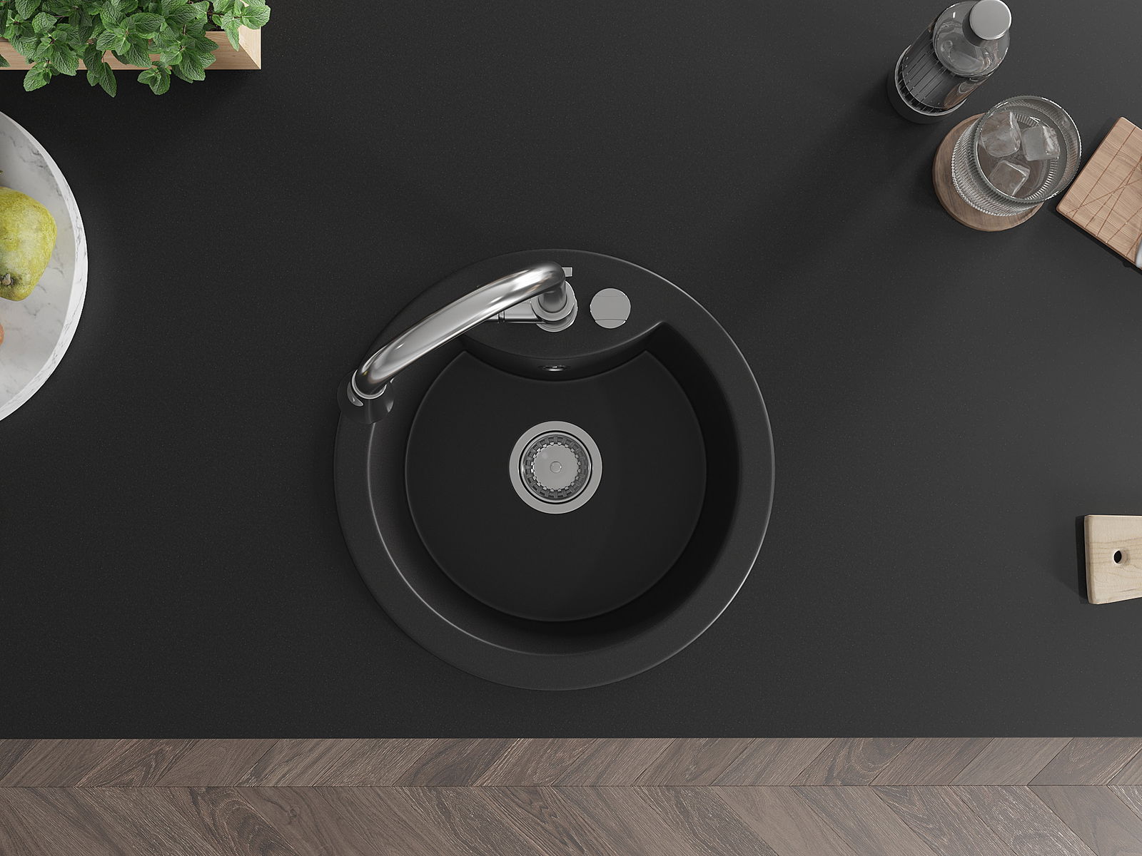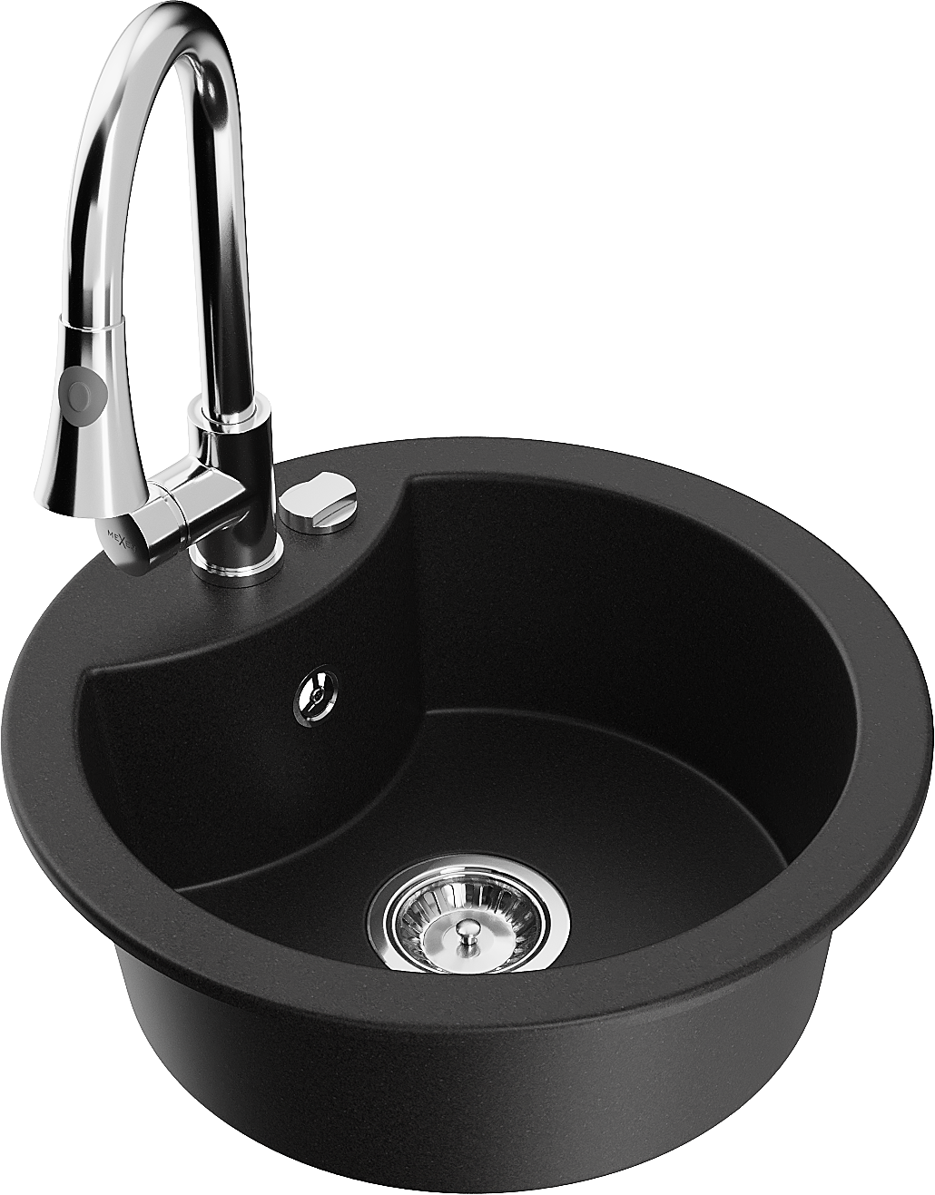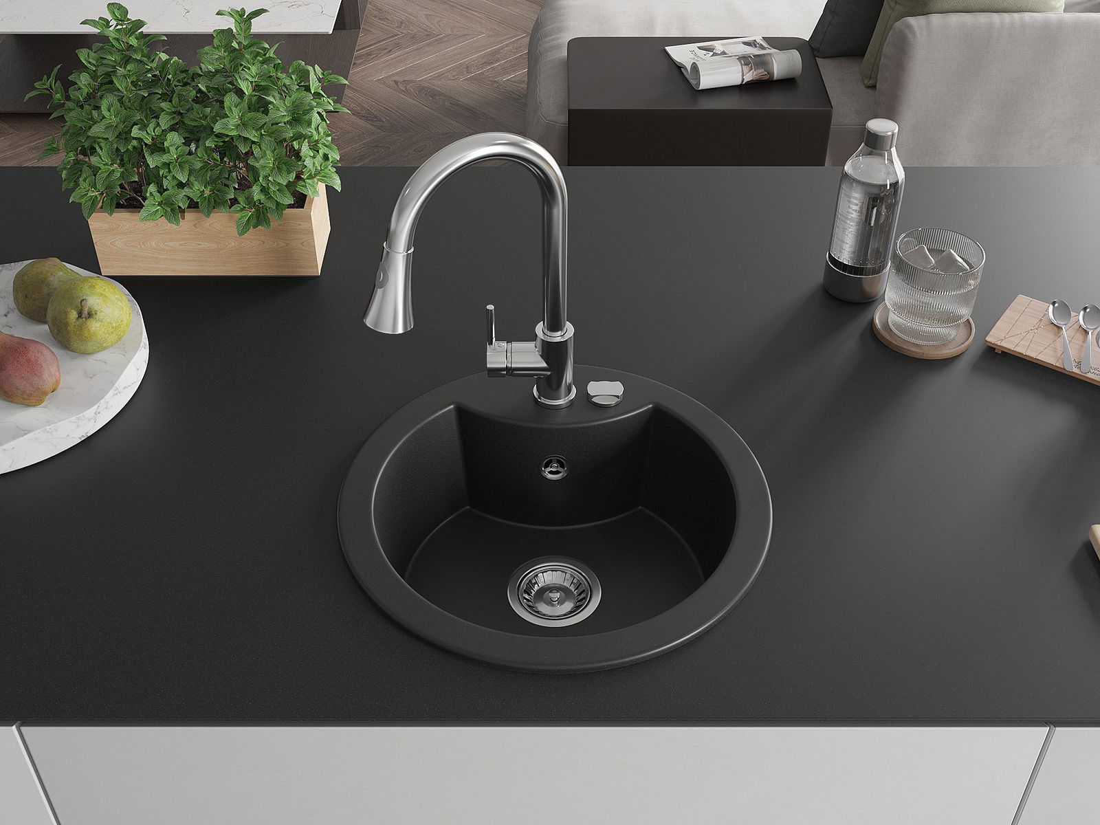 Mexen Diego granito plautuvė 1-jų skyrių su virtuvės maišytuvu Elia, juodas - 6512-77-670101-00
