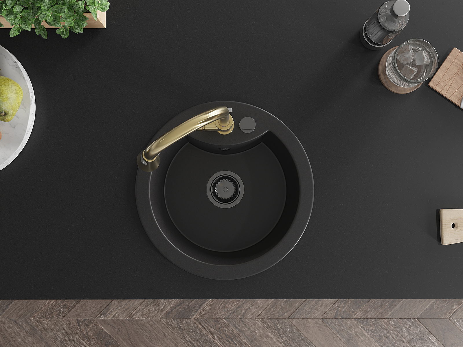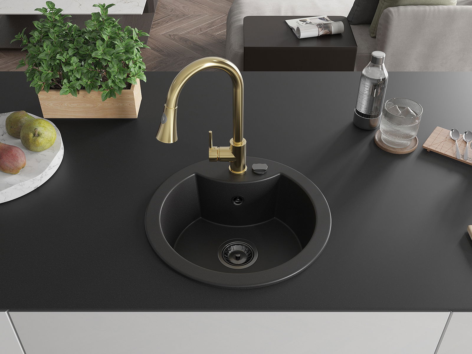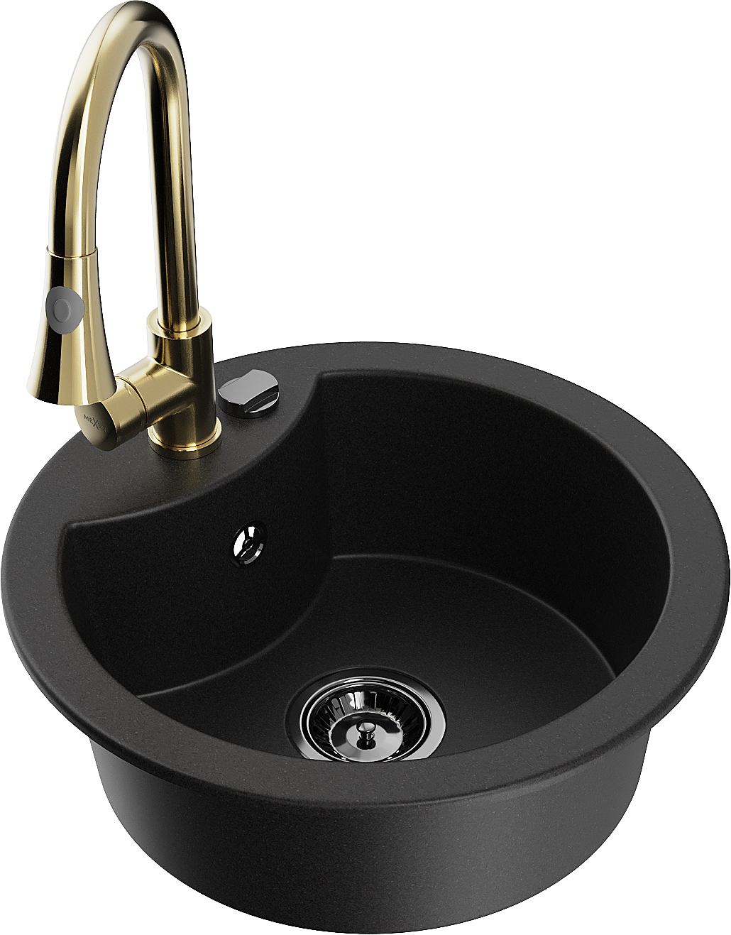 Mexen Diego granitinė vienos kameros virtuvės plautuvė su maišytuvu Elia, juoda - 6512-77-670101-50-B