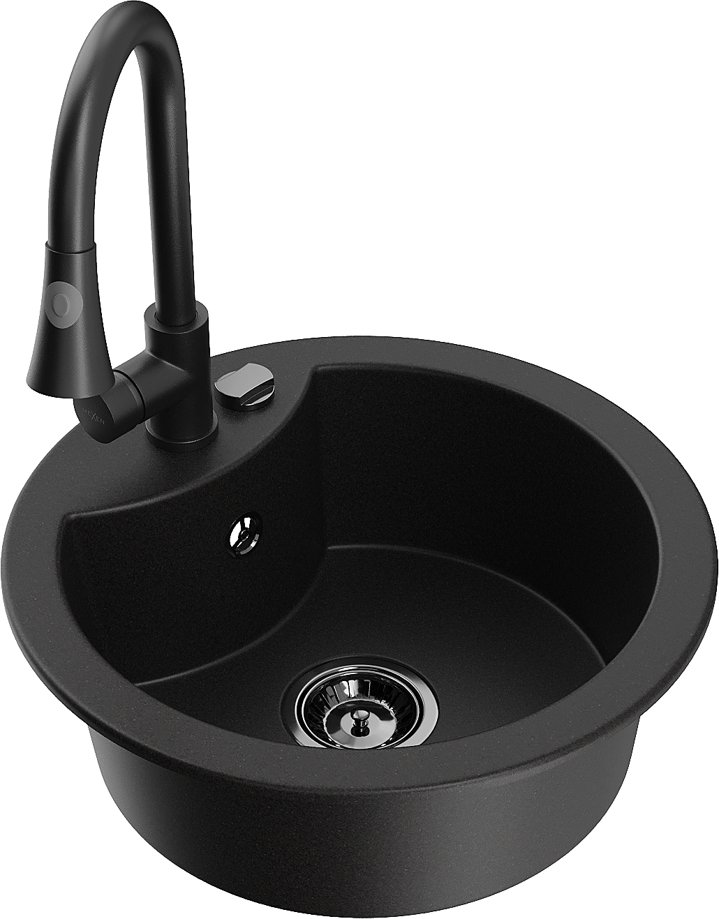 Mexen Diego granitinė plautuvė su virtuvės maišytuvu Elia, juoda - 6512-77-670101-70-B