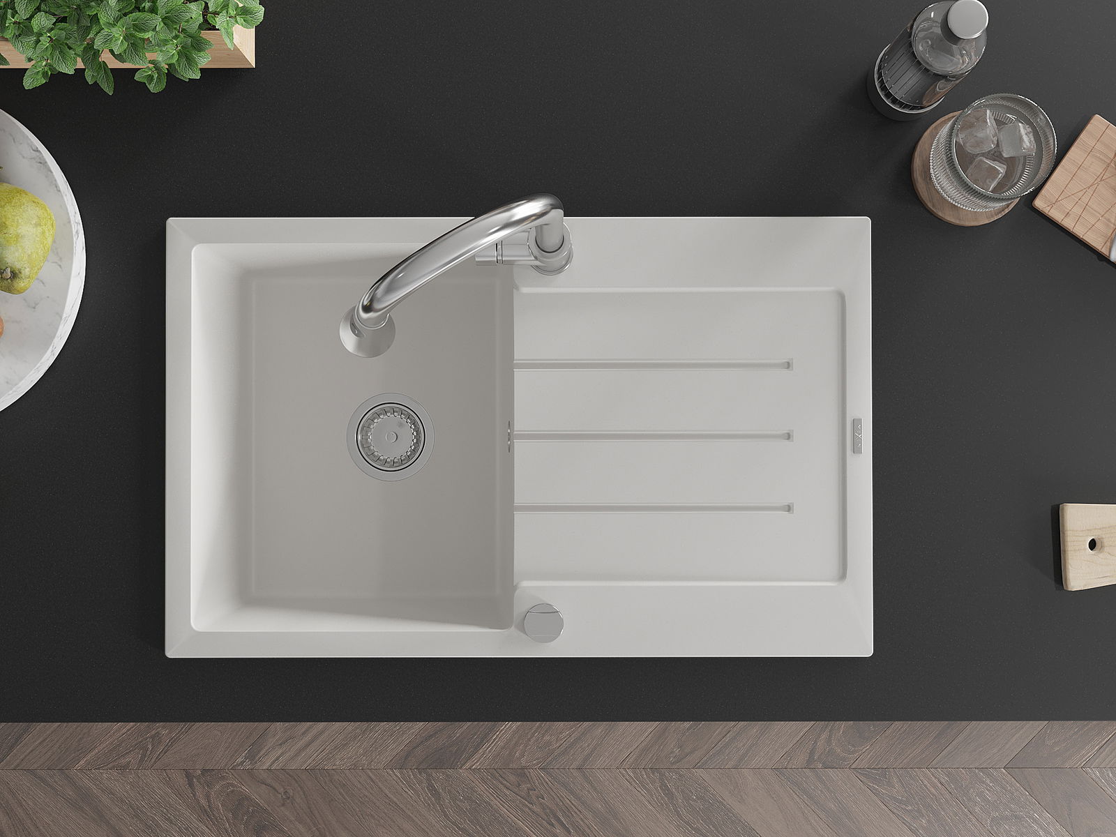 Kriauklės paviršius yra atsparus dėmėms ir spalvos pokyčiams, todėl jį lengva prižiūrėti ir jis išlaiko savo spalvą ilgą laiką. Estetiškai ir praktiškai papildo kiekvieną virtuvę.