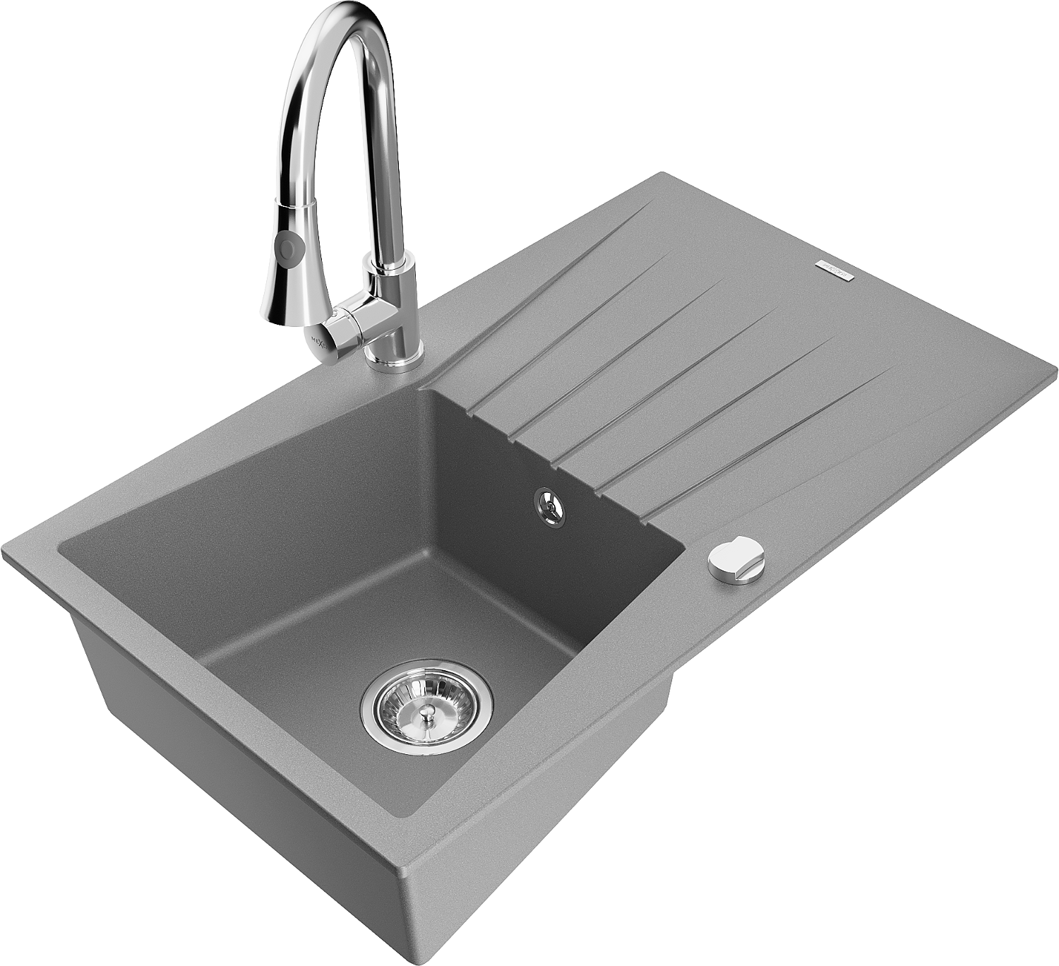 Mexen Cesar granito plautuvė su viena kamera ir lašėjimo sekcija bei virtuviniu maišytuvu Elia, pilka - 6514-71-670101-00