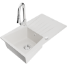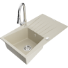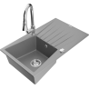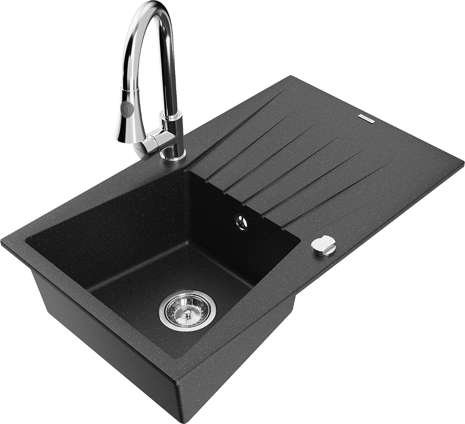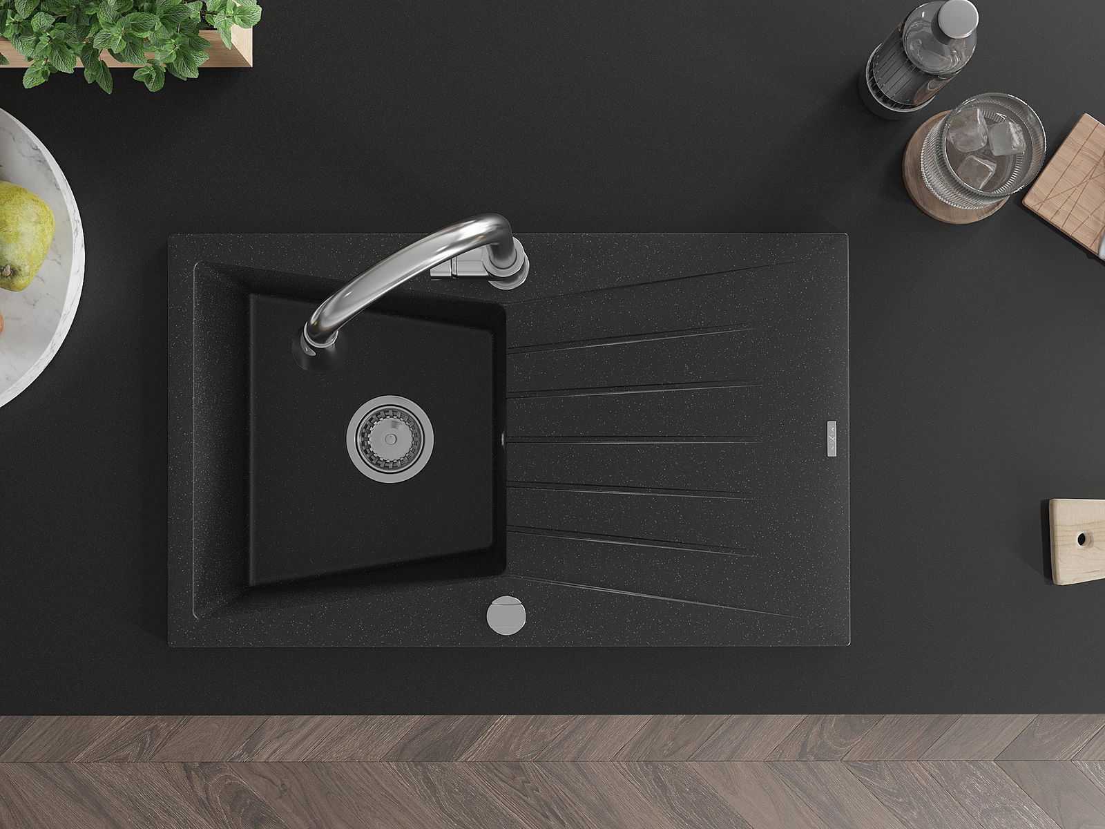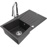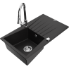 Mexen Cesar vientisas granitinis kriauklė su nutekamuoju ir virtuviniu maišytuvu Elia, juodas/sidabrinis metalikas