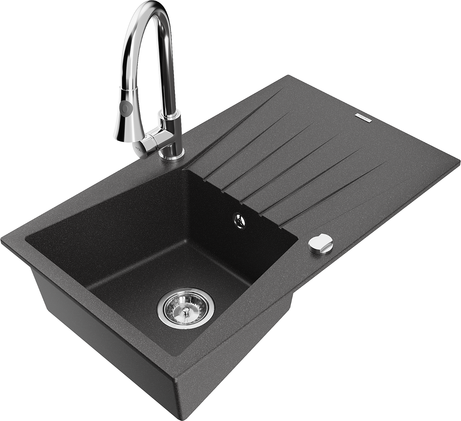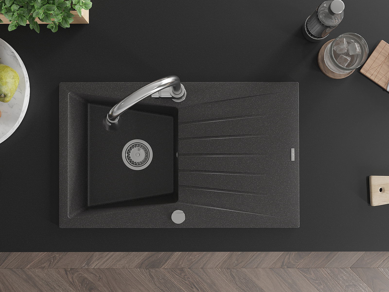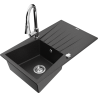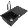Mexen Cesar granitinė vienos kameros kriauklė su džiovykla ir virtuviniu maišytuvu Elia, juoda taškyta - 6514-76-670101-00