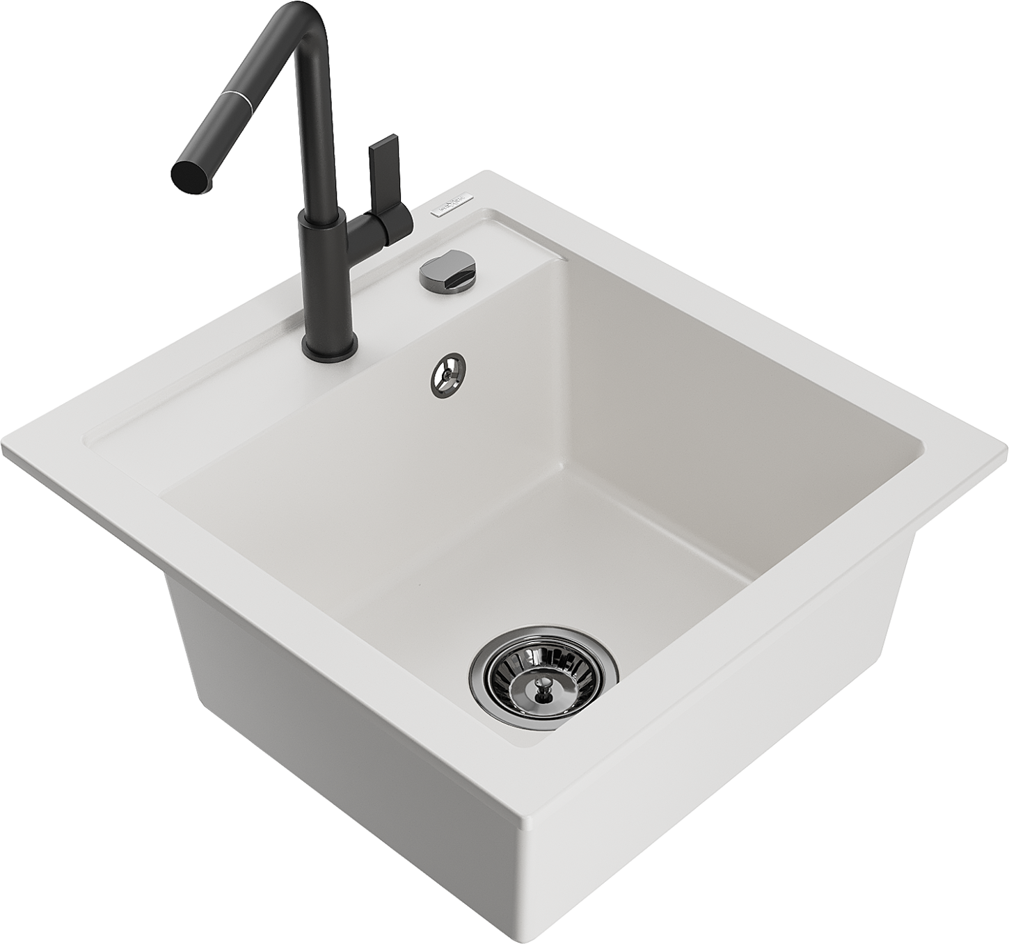 Mexen Vito granito plautuvė 1 skyrelio su Flora virtuviniu maišytuvu, balta - 6503-20-670401-70-B
