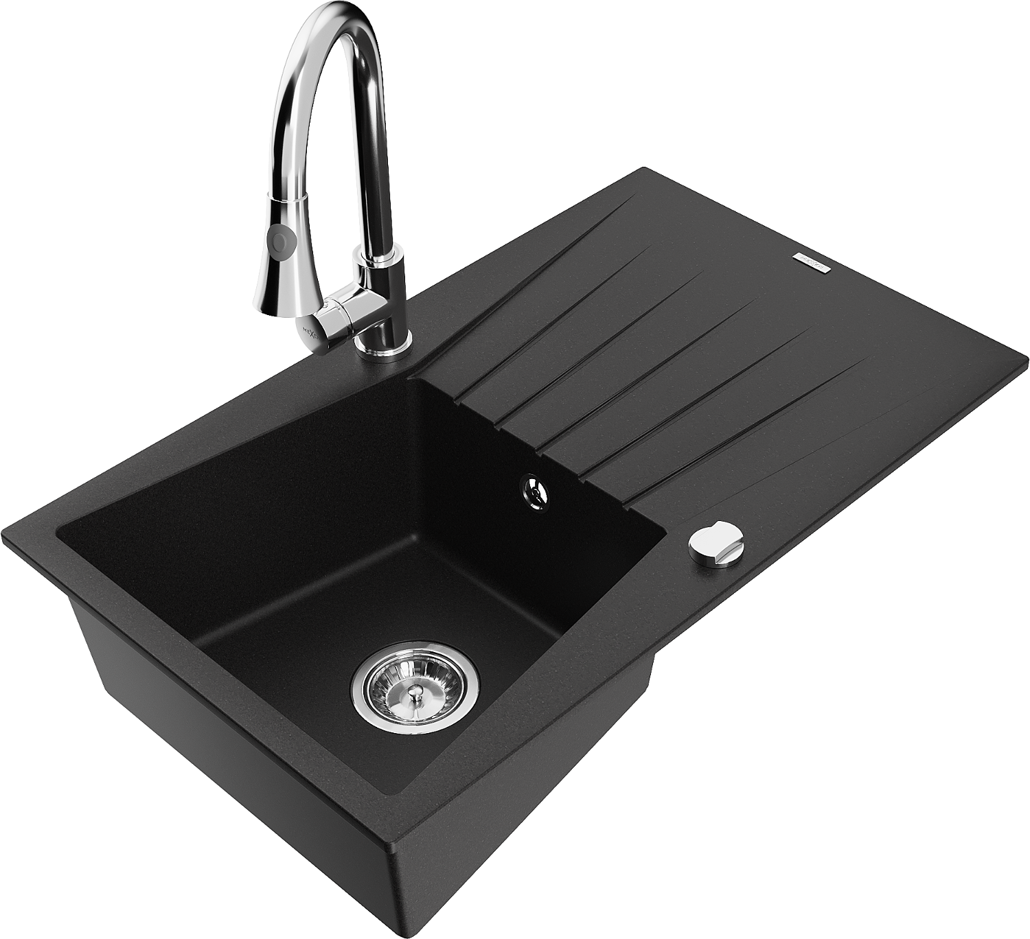 Mexen Cesar granito plautuvė su viena dubeniu ir nusausintuvu bei virtuvės maišytuvu Elia, juodas - 6514-77-670101-00