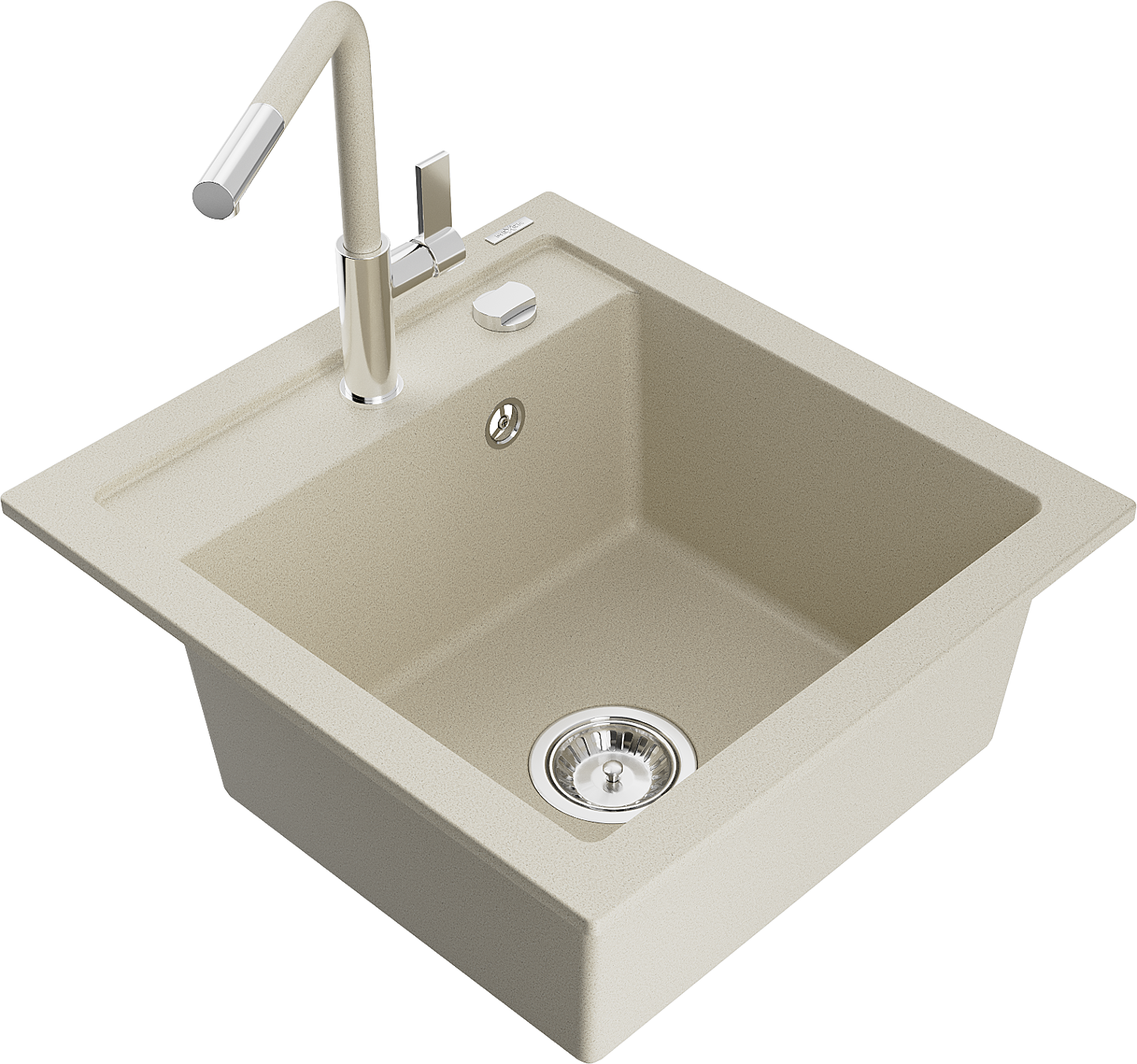 Mexen Vito granito plautuvė su Flora virtuviniu maišytuvu, smėlio - 6503-69-670401-09