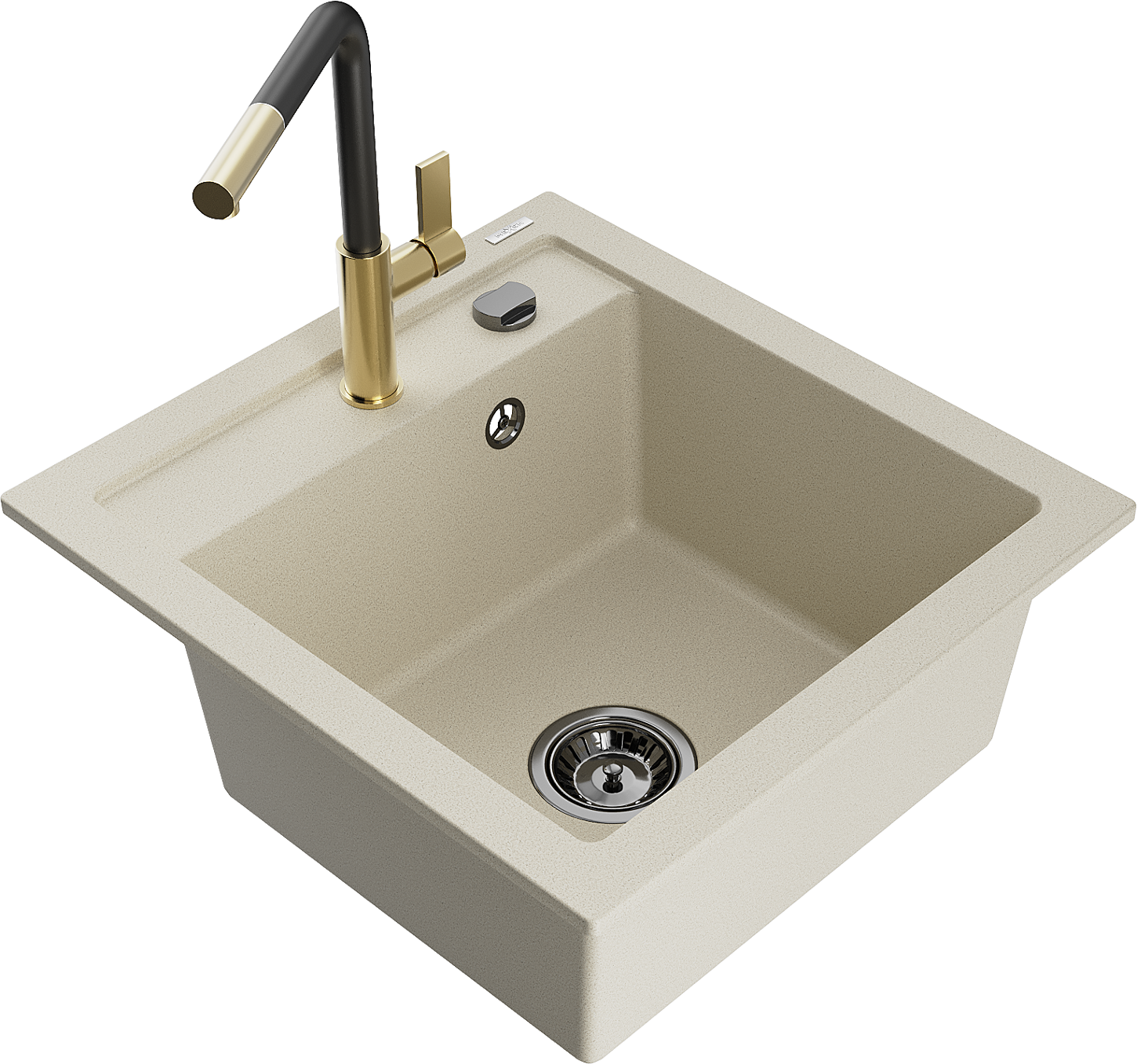 Mexen Vito granitinis virtuvės plautuvas su Flora maišytuvu, smėlio spalvos - 6503-69-670401-57-B