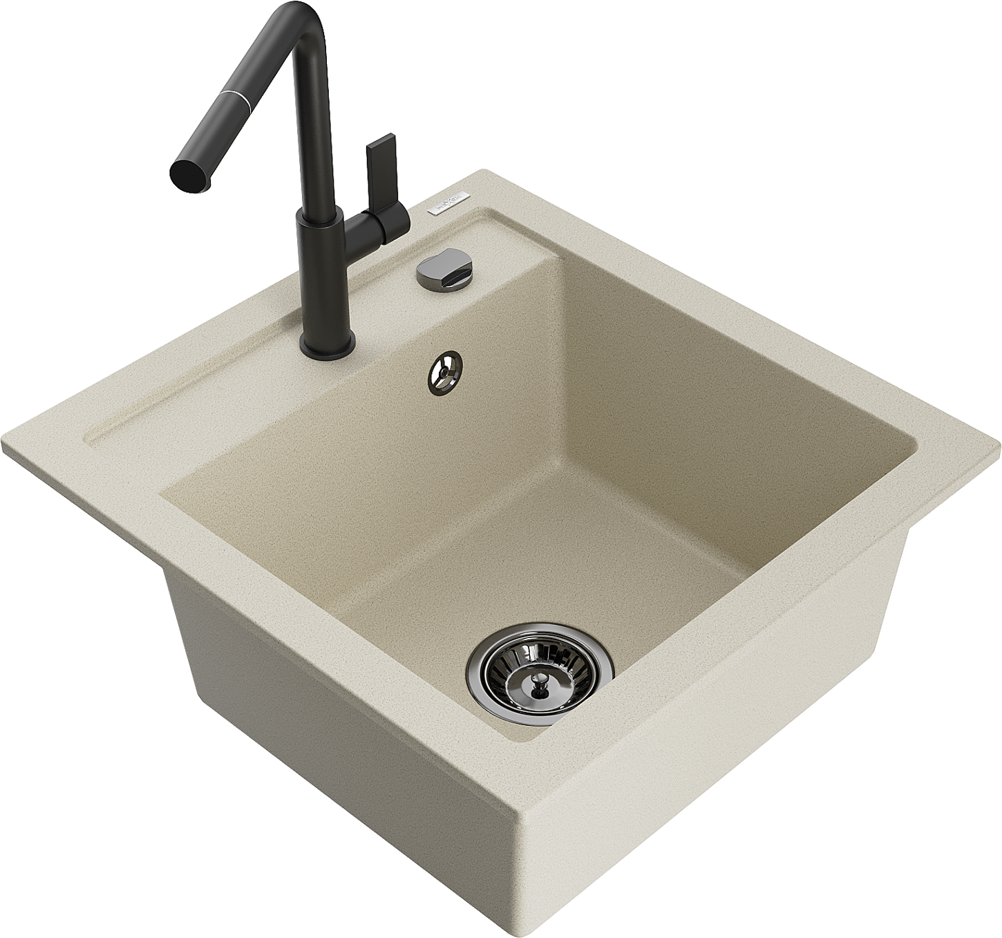 Mexen Vito granitinis plautuvė 1 skyrelio su virtuvės maišytuvu Flora, smėlio - 6503-69-670401-70-B